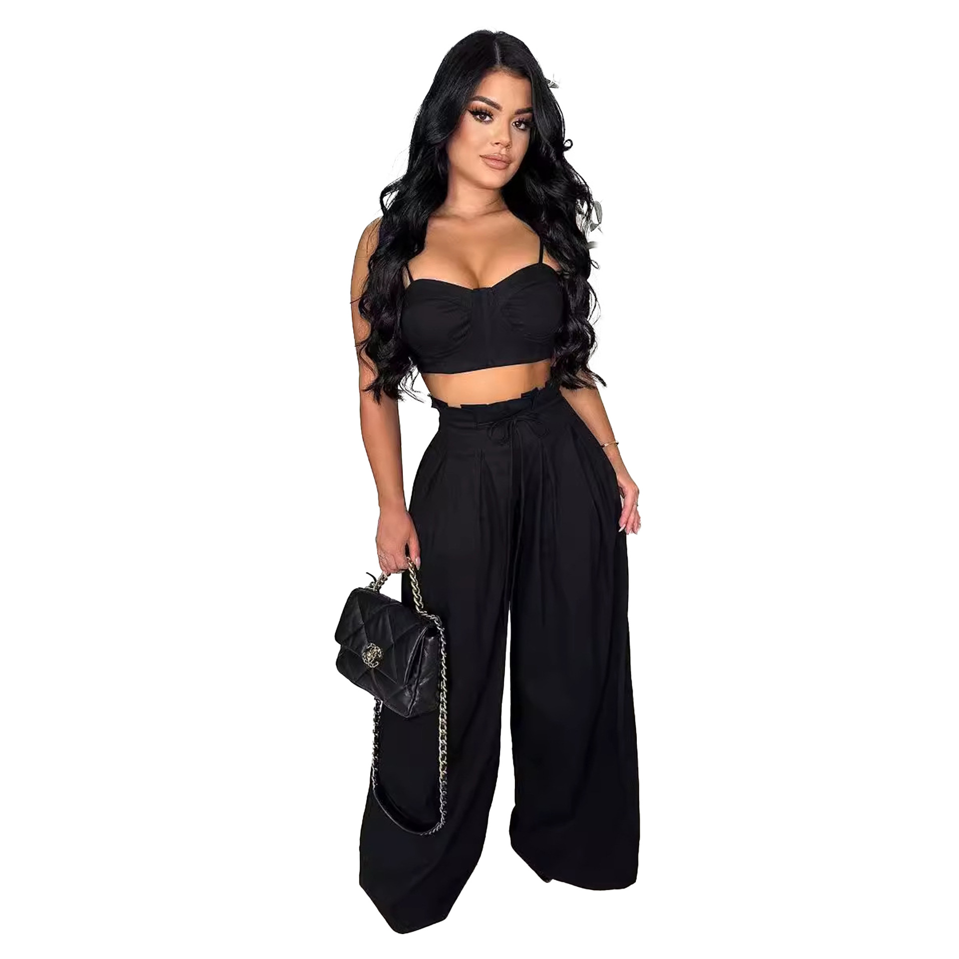 This Women Plunging Tank Top Solid Lace-Up Wide-Leg Pants Two-Piece Set Design Made Of High Quality polyester And Spandex Material. It Is Stretchy, Durable And Comfortable. It Is a Must-Have Outfit For All Seasons. retail Two Piece Pant Sets Can Solve Your cloth selection Troubles. Explore More 2 Piece Pants Set On BamBam retail Women Clothing Online Store.