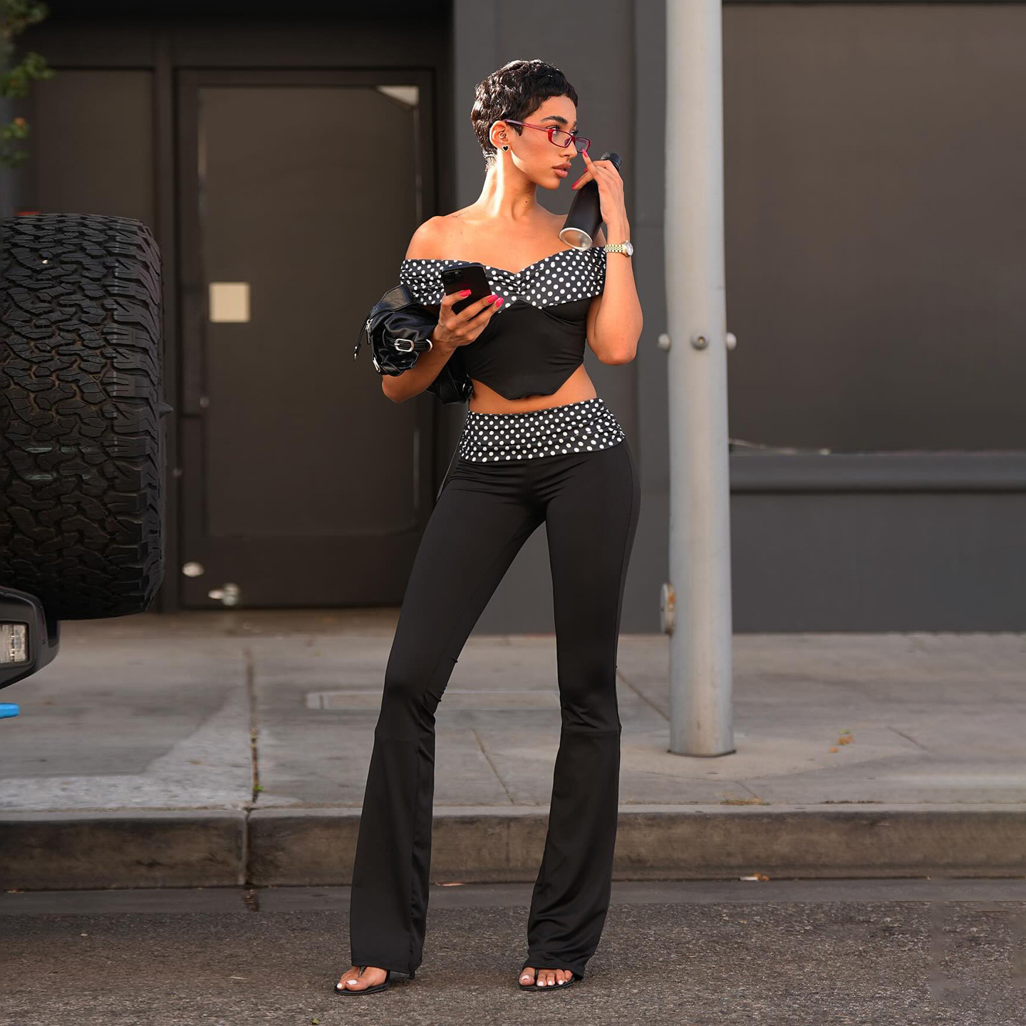 This Women Polka Dot Print Bow Bralette Sexy Stretchy Top And Pant Two-Piece Set Design Made Of High Quality polyester And Spandex Material. It Is Stretchy, Durable And Comfortable. It Is a Must-Have Outfit For All Seasons. retail Two Piece Pant Sets Can Solve Your cloth selection Troubles. Explore More 2 Piece Pants Set On BamBam retail Women Clothing Online Store.
