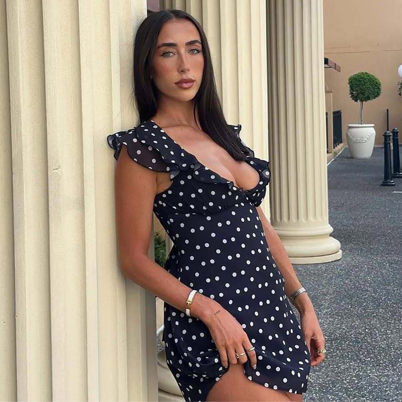 This Women Polka Dot Print Sexy v-Neck Patchwork Mesh Mini Dress Design Made Of High Quality polyester And Spandex Material. It Is Stretchy, Durable And Comfortable. Casual Dresses With Long Sleeves Can Not Only Be Worn As Outerwear In Spring And Autumn, But Also Matching a Jacket In Winter, It Is a Must Have Item For Every Season. Grab Really Great Buy Casual Dresses For Women And Grow Your Business. No Moq In BamBam.