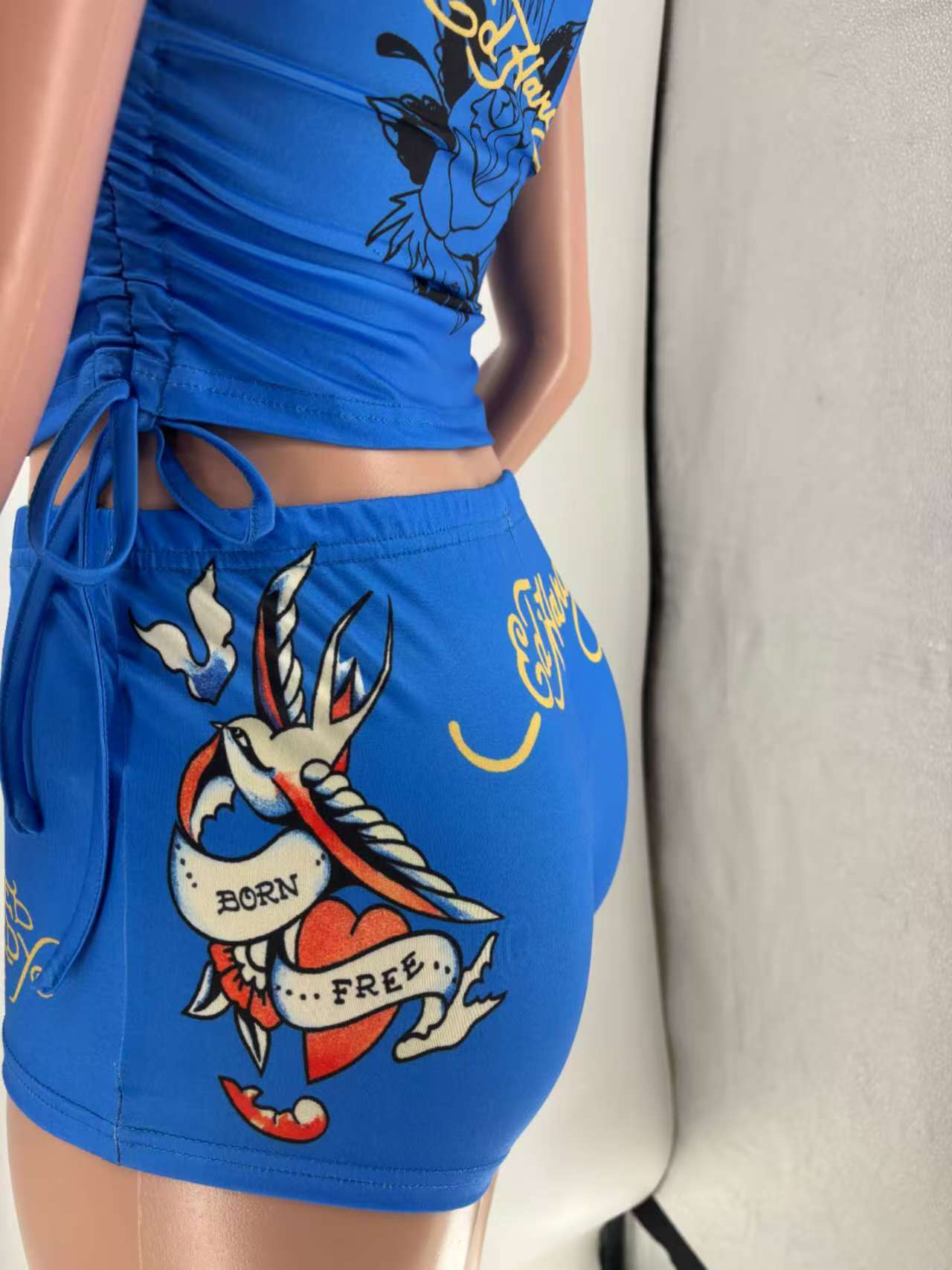 This Women Print Chest Wrap Top And Shorts Two-Piece Set Design Made Of High Quality polyester And Spandex Material. It Is Stretchy, Durable And Comfortable. It Come With The Top And Shorts. retail Short Sets Saves Some People From The Trouble Of Matching. And For Matchmakers It Is More Flexible Than One-Piece Outfit. Two Piece Short Set Can Be Worn Together Or Individually, Ladies Can Match Them According To Different Occasions. Grab Different Two Piece Short Sets For This Spring And Summer.