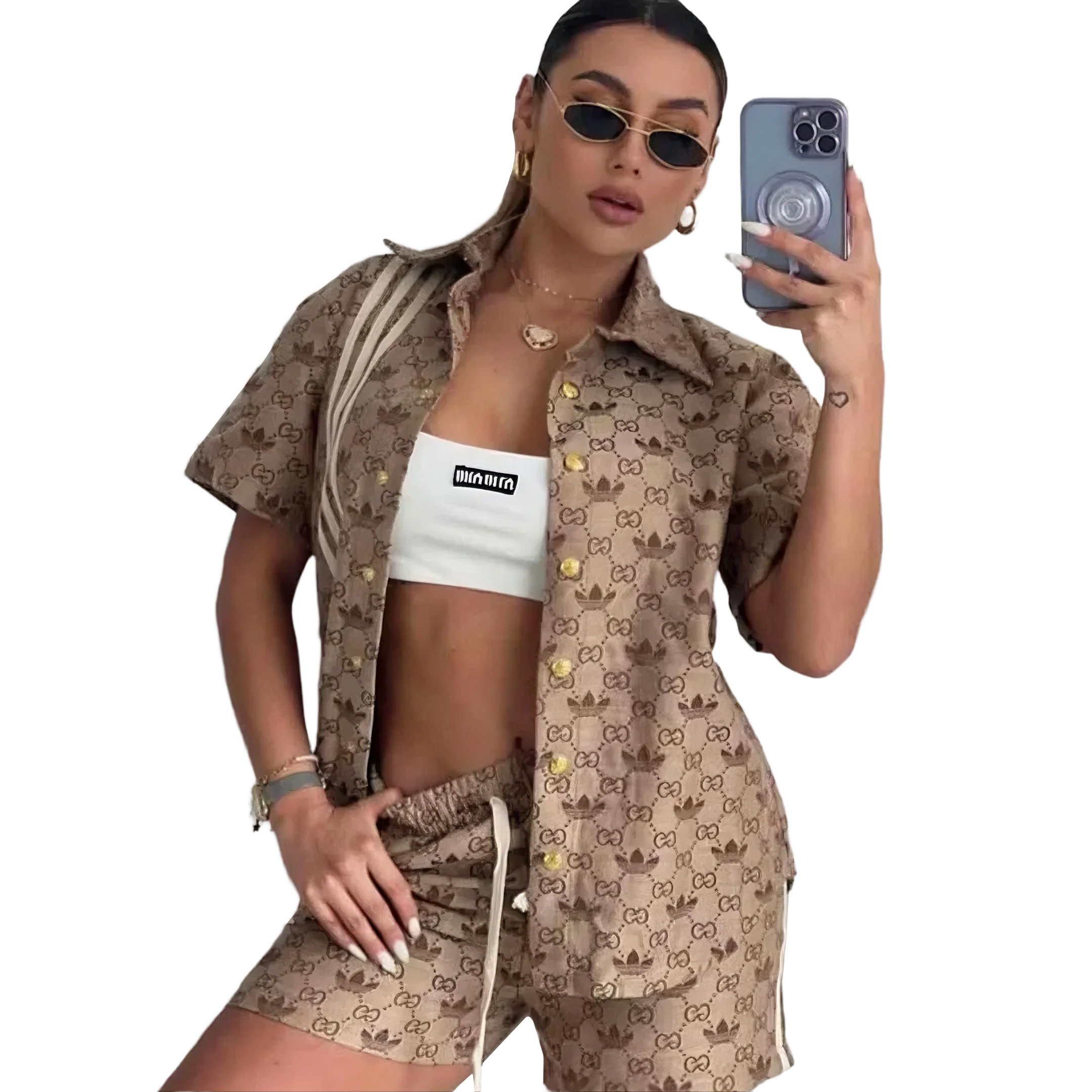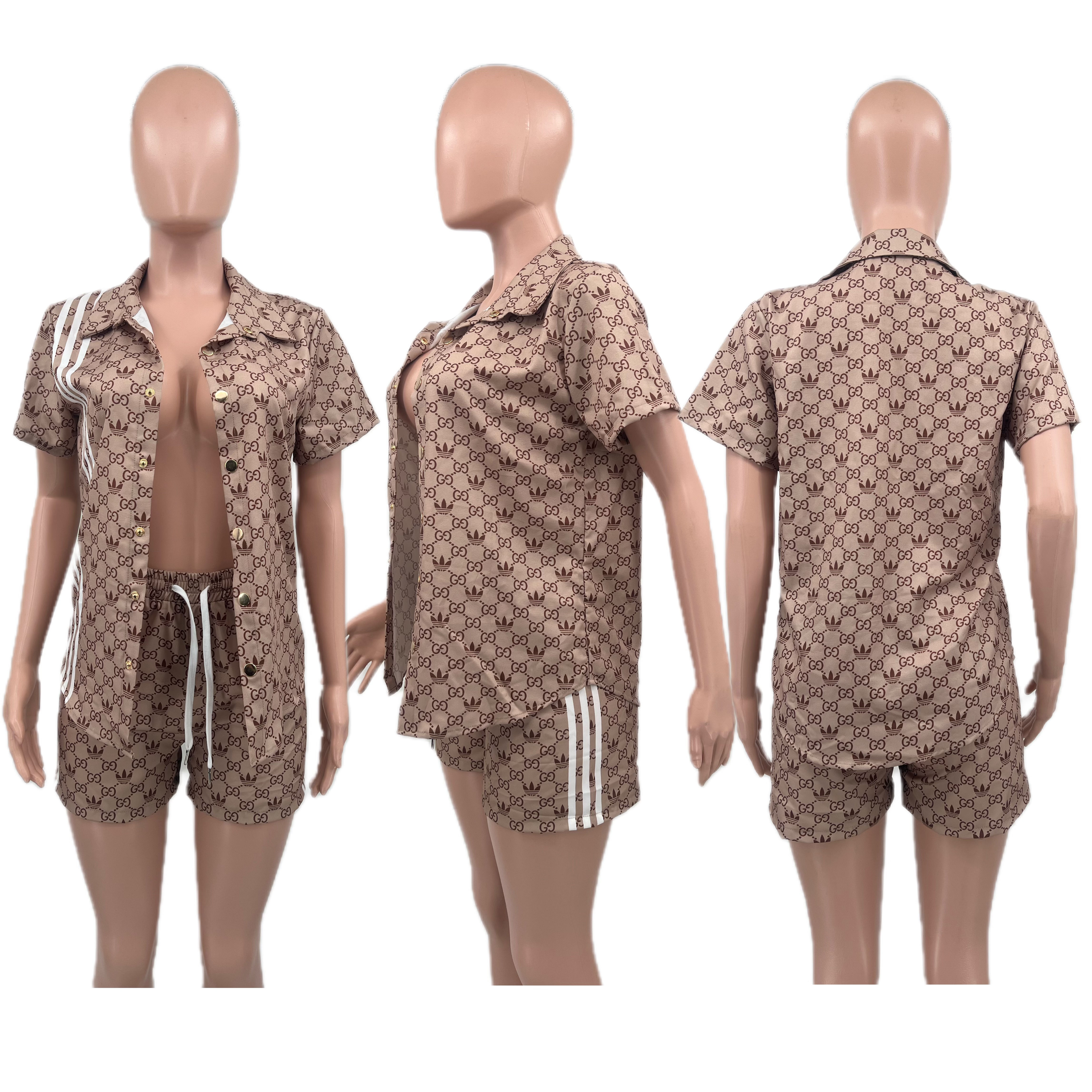 This Women Print Turndown Collar Short-Sleeved Shirt Design Made Of High Quality polyester And Spandex Material. It Is Stretchy, Durable And Comfortable. It Come With The Top And Shorts. retail Short Sets Saves Some People From The Trouble Of Matching. And For Matchmakers It Is More Flexible Than One-Piece Outfit. Two Piece Short Set Can Be Worn Together Or Individually, Ladies Can Match Them According To Different Occasions. Grab Different Two Piece Short Sets For This Spring And Summer.