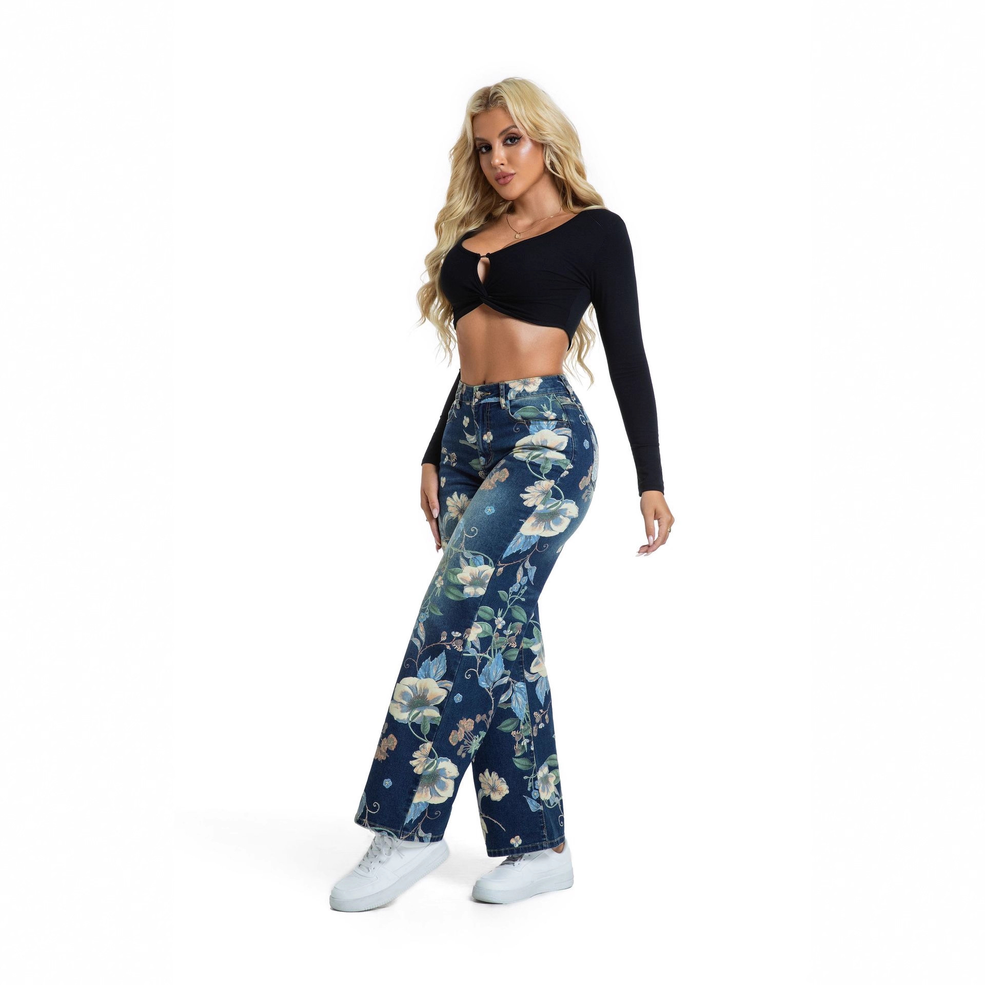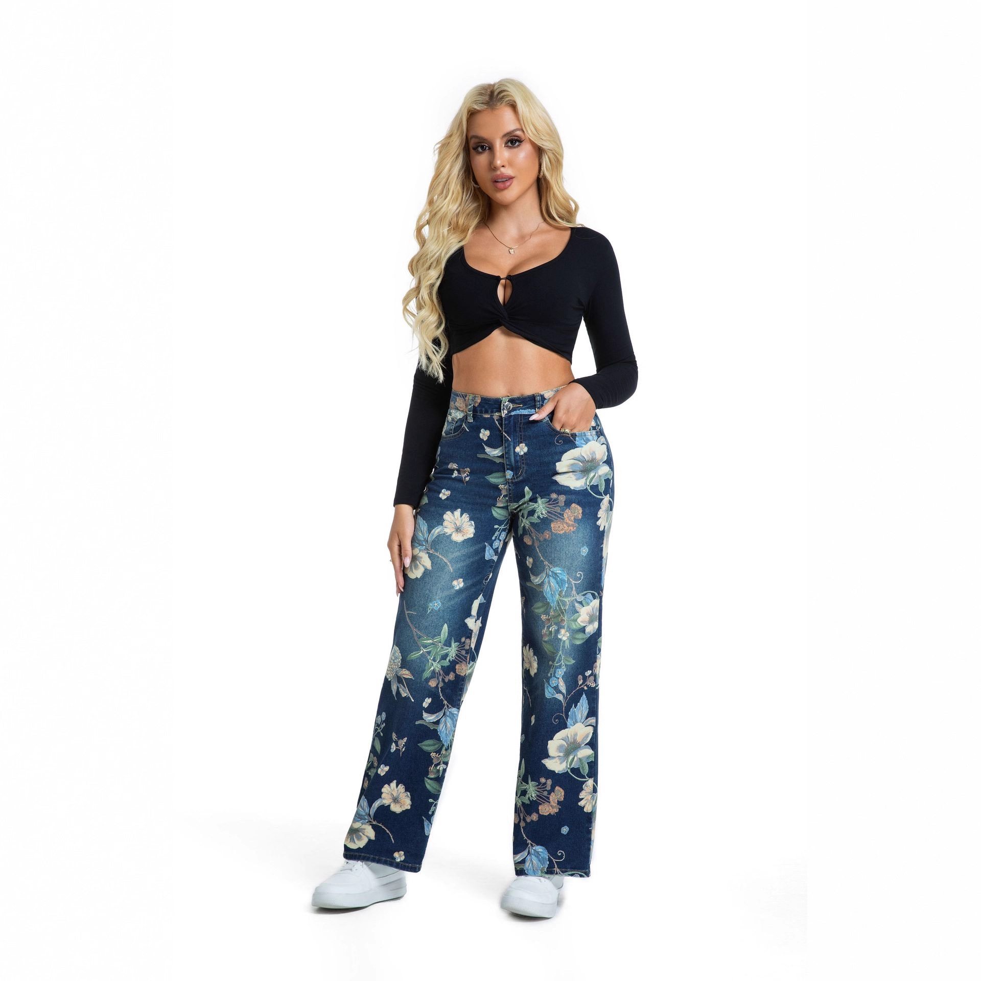 This Women Printed Blue Wide-Leg Denim Pants Design Made Of Durable And Stretchy Jeans Fabric. It Is a Must-Have Item For everyday use. Trendy retail Jeans Is a Indispensable Item For Everyday Fashion. Women’s Jeans With High Waist Is a Must Have trouser/pant that helps bring the grace of shape of your legs out even more and fits perfectly snugging your thighs and body gracefully. Grab a Must Have High Waist Jeans retail For Your Closet, Just Choose Different Matching Tops To stay in control of Every Occasion Easily.