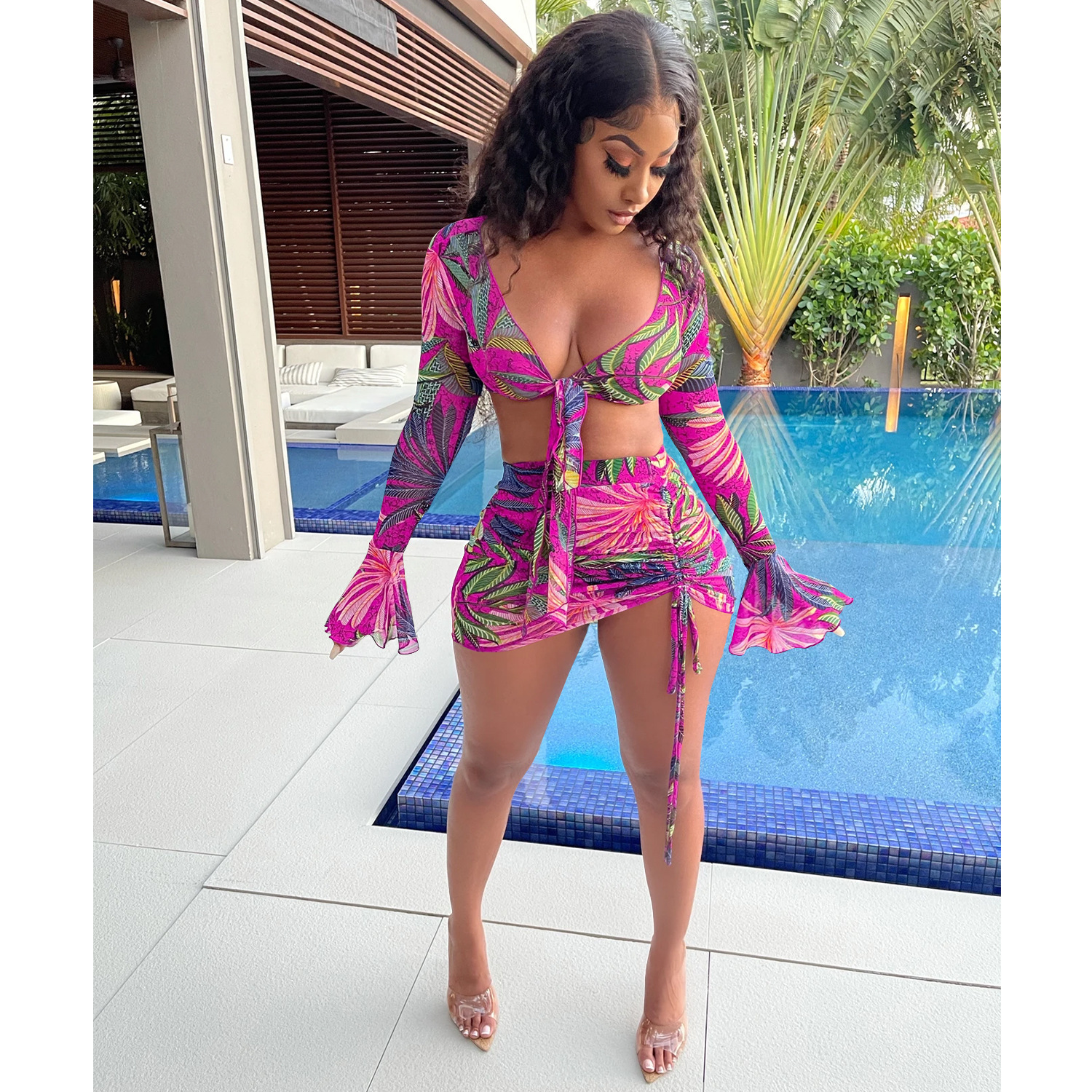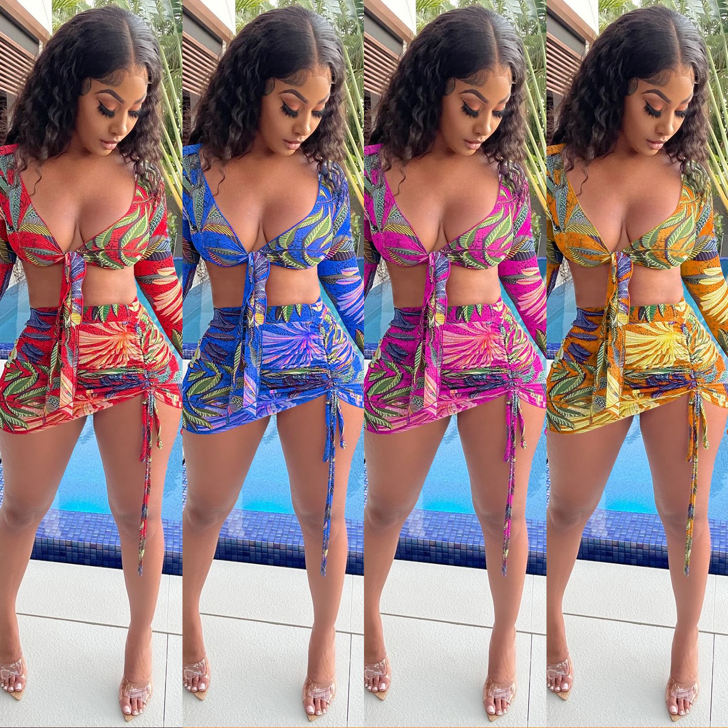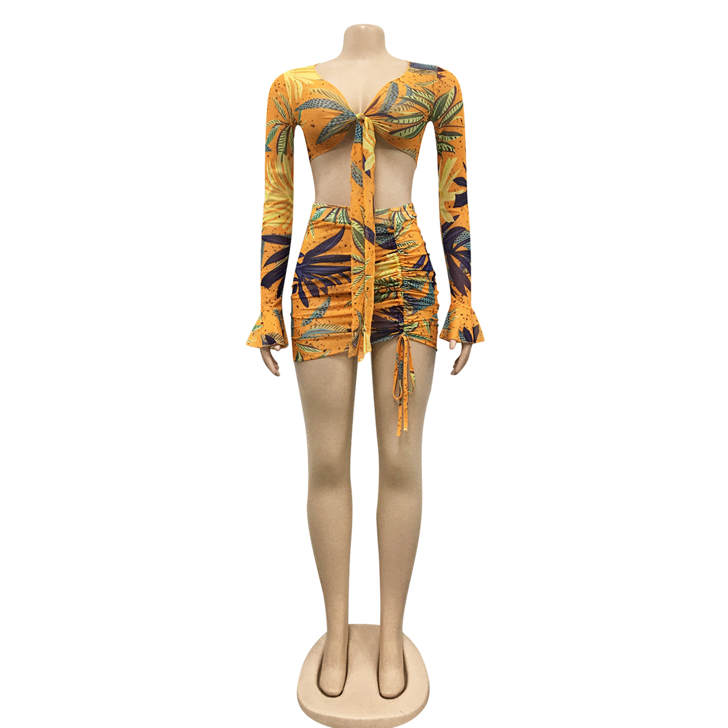 This Women Printed v-Neck Lace-Up Long-Sleeved Top And Drawstring Skirt Two-Piece Set Design Made Of High Quality polyester And Spandex Material. It Is Stretchy, Durable And Comfortable. It Come With The Top And Skirt Matching Set. Women’s Skirt Suit Sets Is a Great Alternative To One Piece Outfit. It Can Either Be Worn Together Or Individually, So You Can Combine Them Endlessly. Grab Different Two Piece Skirt Set retail On Our Website a Women's Clothing Store Online At Really affordable price And Enjoy fast delivery worldwide.