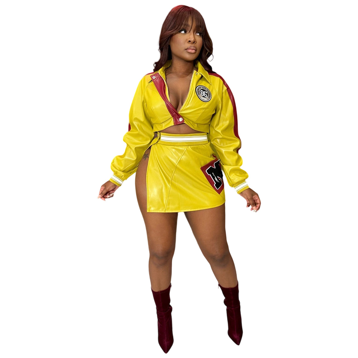 This Women Pu Leather Printed Jacket And Slit Skirt Two-Piece Set Design Made Of High Quality polyester And Spandex Material. It Is Stretchy, Durable And Comfortable. It Come With The Top And Skirt Matching Set. Women’s Skirt Suit Sets Is a Great Alternative To One Piece Outfit. It Can Either Be Worn Together Or Individually, So You Can Combine Them Endlessly. Grab Different Two Piece Skirt Set retail On Our Website a Women's Clothing Store Online At Really affordable price And Enjoy fast delivery worldwide.