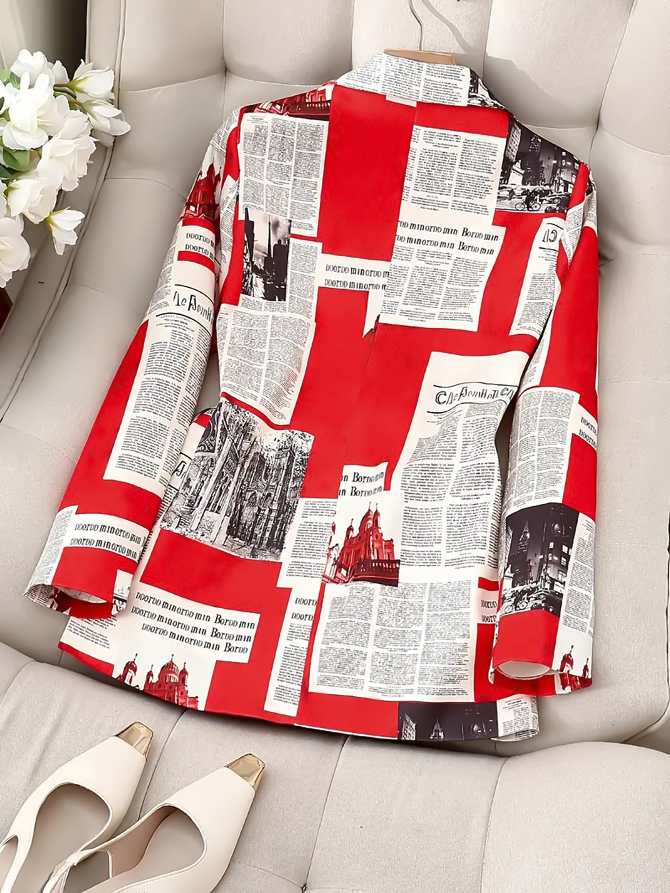 This Women Red Geometric Turndown Collar Casual Letter Blazer Made Of Durable And Comfortable Material. It Is a Must-Have Item For Commuting And Events. Ladies Blazer Can Be Found In All Seasons And All Occasions. No One Can Refuse The Temptation Of Blazers. Blazers Are No Longer Just Suitable For Business Occasions, Casual And Loose Cut Style Cheap retail Women’s Blazer Jackets Can Be Worn daily. Blazer Matching Women’s Pants Suits Looks More Business-Friendly And Can Be Worn To Work And Formal Occasions. When You Need More retail Women Blazers And Blazer Sets, You Can Always Find What You Need On Our retail Women Clothing Online Store.