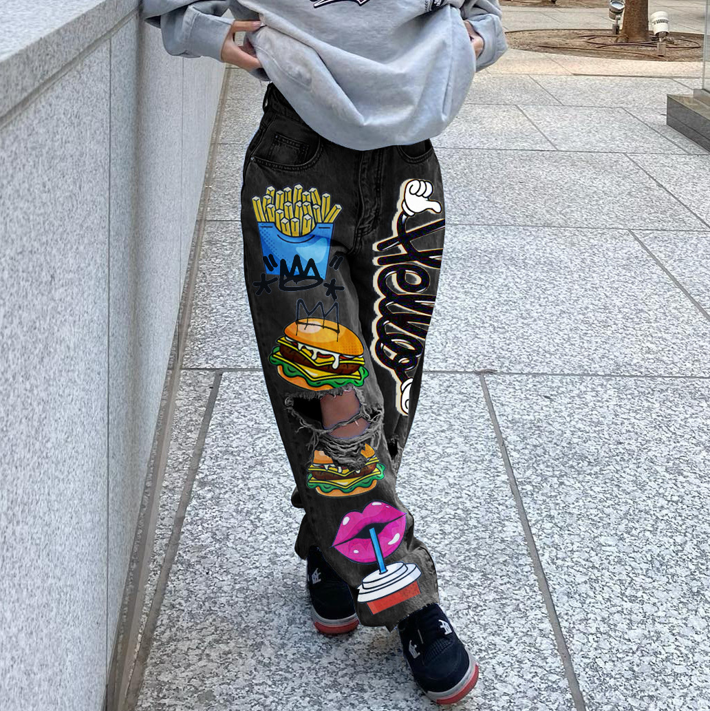 This Women Ripped Print Shabby Denim Pants Design Made Of Durable And Stretchy Jeans Fabric. It Is a Must-Have Item For everyday use. Trendy retail Jeans Is a Indispensable Item For Everyday Fashion. Women’s Jeans With High Waist Is a Must Have trouser/pant that helps bring the grace of shape of your legs out even more and fits perfectly snugging your thighs and body gracefully. Grab a Must Have High Waist Jeans retail For Your Closet, Just Choose Different Matching Tops To stay in control of Every Occasion Easily.