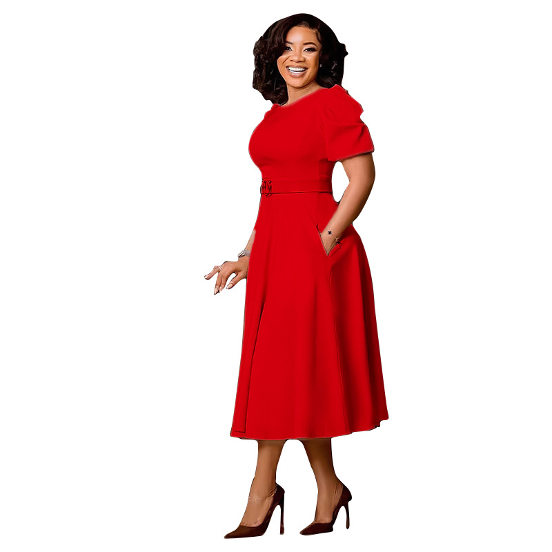 This Women Round Neck Elegant Puff Sleeve African Dress Design Made Of High Quality polyester And Spandex Material. It's nice and stretchy, feels and wears comfortably on your body. Women’s Midi dresses suits all Kinds Of Occasions - Daily Wear, Go To The Church, Commuting And Events Occasion. Midi Dresses can't be Boring, Find Best Midi Dresses At BamBam With Trendy Styles.