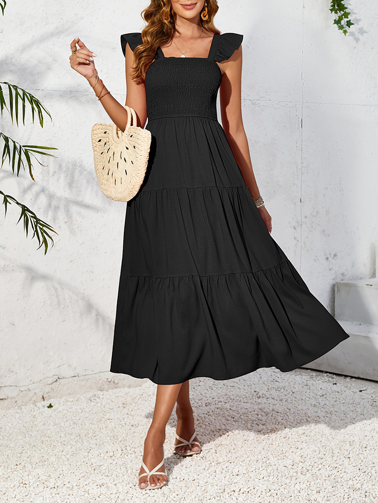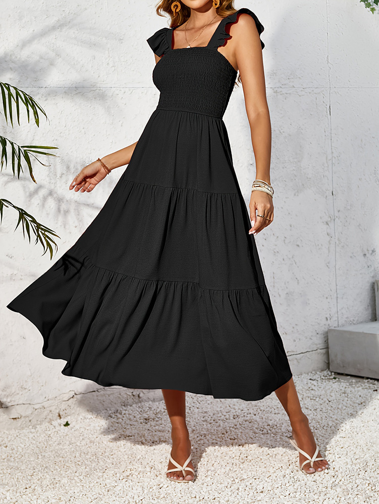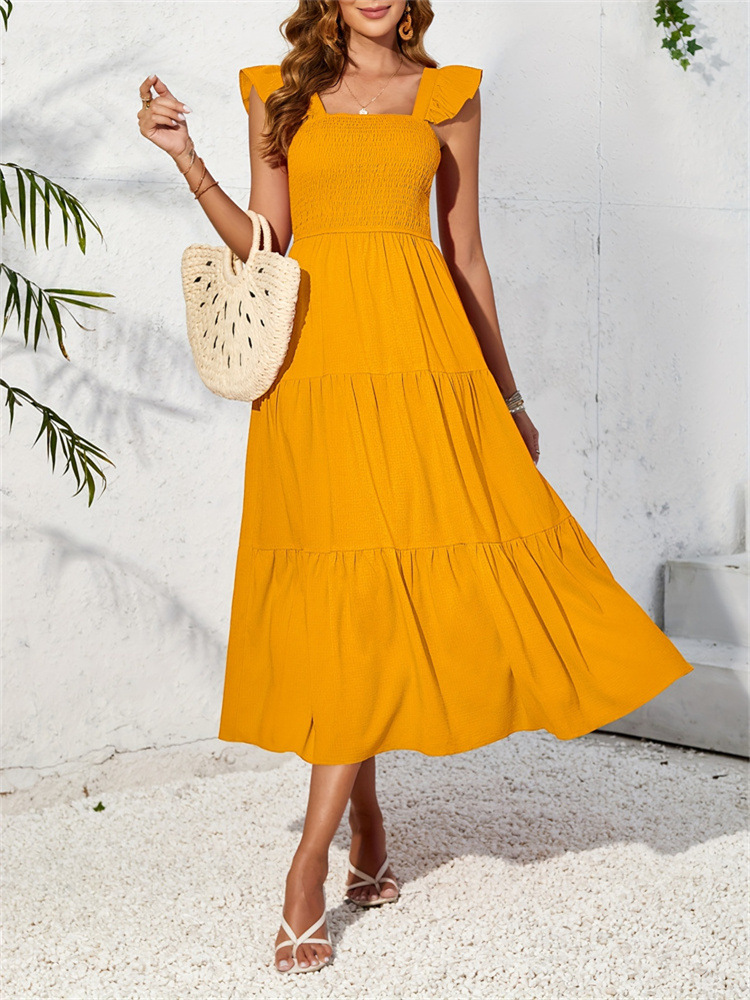 This Women Ruffled Flying Sleeve Tank Top Cascading Ruffles French Dress Design Made Of High Quality polyester And Spandex Material. It Is Stretchy, Durable And Comfortable. Casual Dresses With Long Sleeves Can Not Only Be Worn As Outerwear In Spring And Autumn, But Also Matching a Jacket In Winter, It Is a Must Have Item For Every Season. Grab Really Great Buy Casual Dresses For Women And Grow Your Business. No Moq In BamBam.