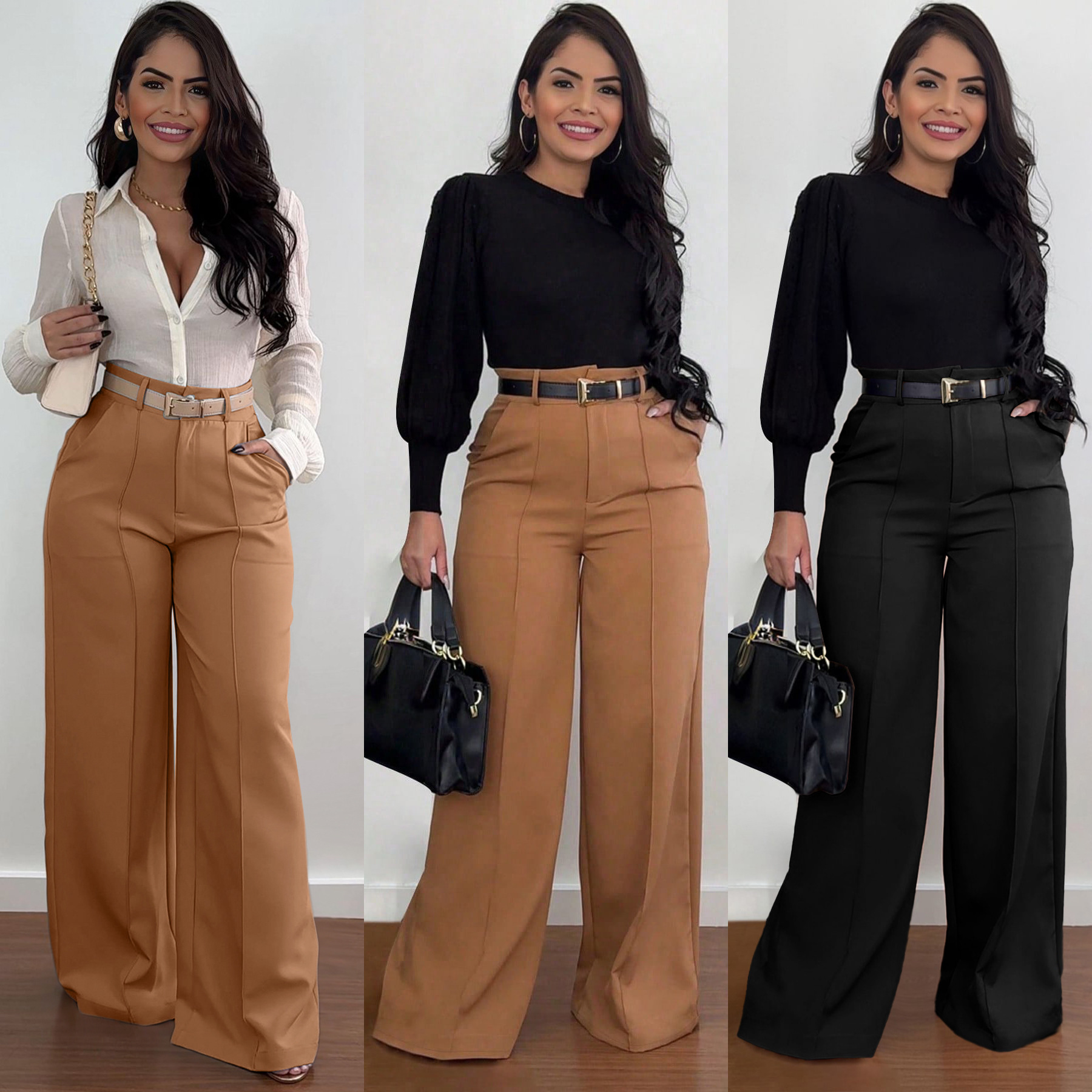 This Women's Autumn Career Solid Color Wide-Leg Trousers Loose Straight-Leg Pants Design Made Of Durable And Stretchy Material. It Is a Must-Have Item For daily use. Women Casual Pants retail At BamBam Has Wide Range Selections On Colors, Material, Print, And Designs. Ladies Can Always Find Her Right Trousers Here - No One Can Refuse The Temptation Of Sexy Leather Pants. Cool Jeans Trousers Is a Must-Have Item For Ladies No Matter What Age. Flared Pants Is Here Again, Becoming One Of The Icons Of Fashion Once Again. When You Need More retail Women Trousers, You Can Always Find What You Need On Our retail Women Clothing Online Store.