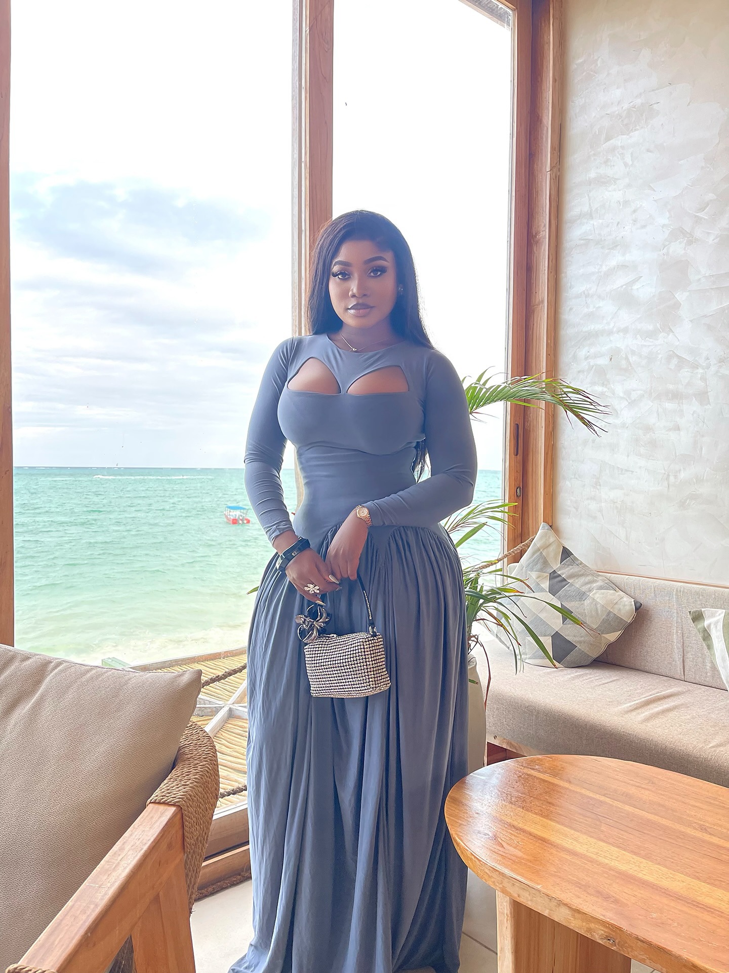 This Women's Autumn Fashion Elegant Solid Color Long Sleeve Cut-Out Flared Dress Design Made Of High Quality polyester And Spandex Material, Which Is Stretchy, Soft And Comfortable. The Is Always On Trend. This Casual Maxi Dresses Is a Must-Have For Vocations And Dating Occasions. Maxi Dresses At BamBam Comes With Huge Selections Of Colors, Sizes, Material, And Designs. When You Need retail affordable Maxi Dresses, You Can Always Find Vary Collection And No Moq On Our retail Women Fashion Online Store.