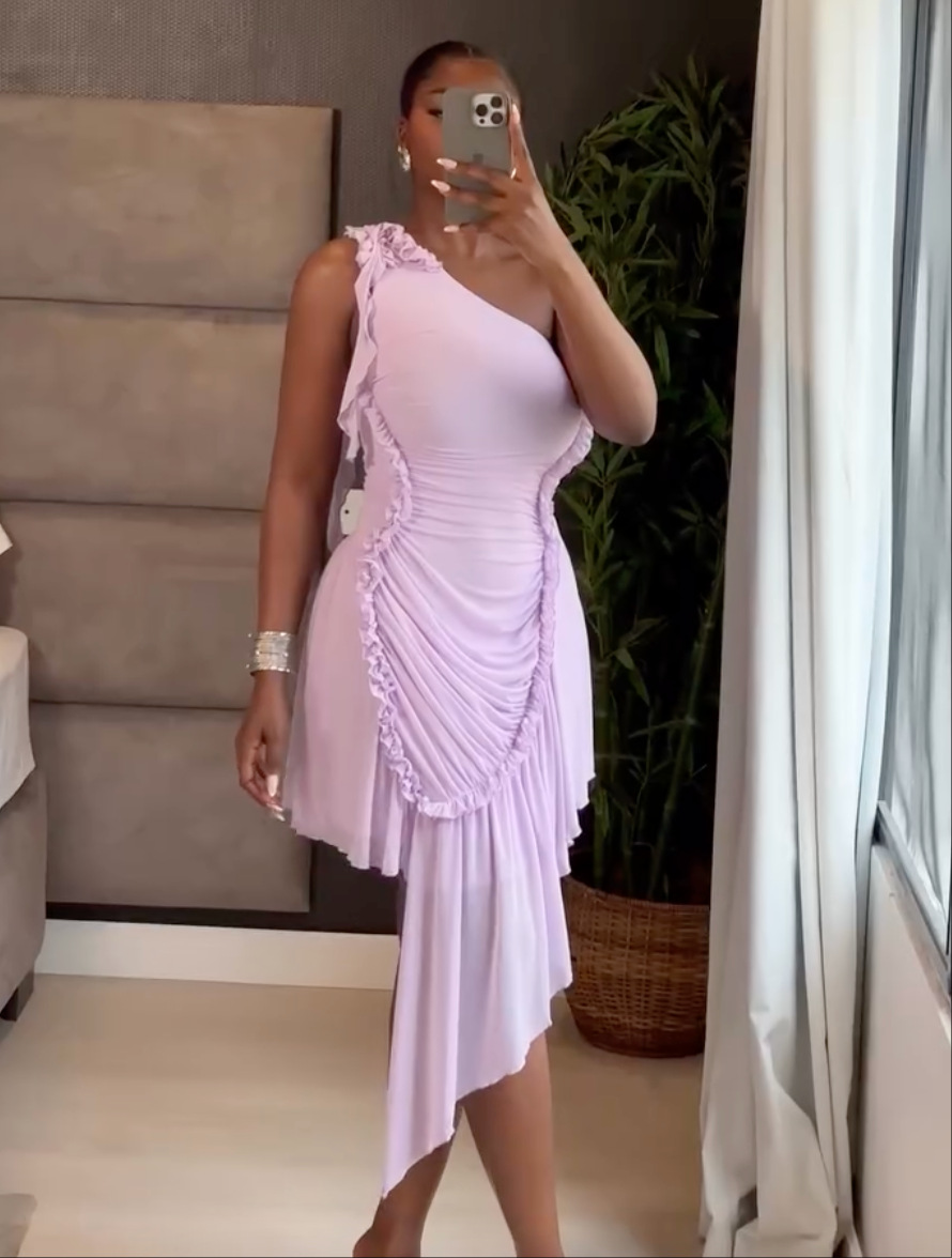 This Women's Autumn Fashion One Shoulder Ruffle Hem Asymmetrical Solid Color Dress Design Made Of High Quality polyester And Spandex Material. It Is Stretchy, Durable And Comfortable. Casual Dresses With Long Sleeves Can Not Only Be Worn As Outerwear In Spring And Autumn, But Also Matching a Jacket In Winter, It Is a Must Have Item For Every Season. Grab Really Great Buy Casual Dresses For Women And Grow Your Business. No Moq In BamBam.