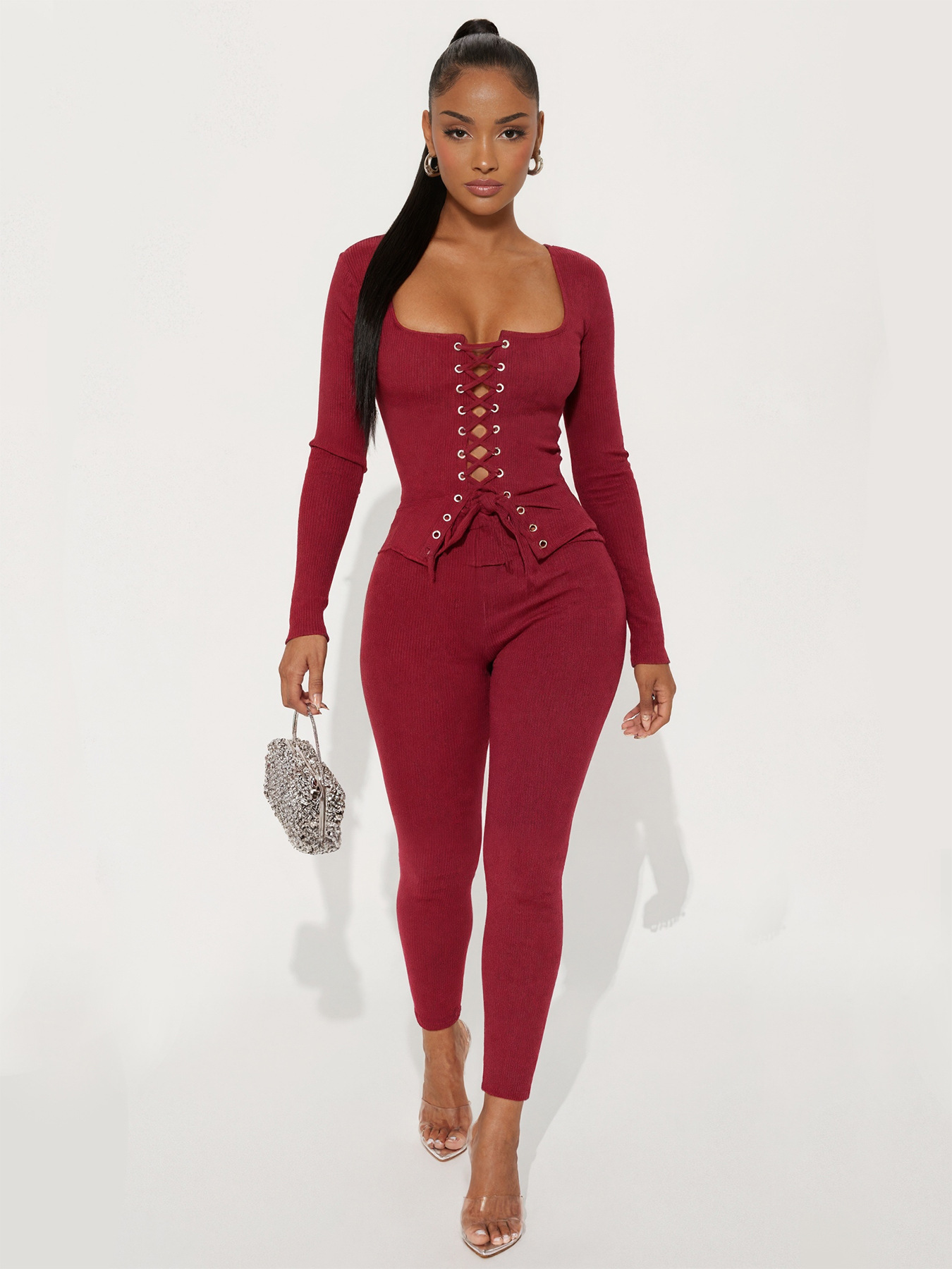 This Women's Autumn Lace-Up Long Sleeve Solid Two-Piece Pants Set Design Made Of High Quality polyester And Spandex Material. It Is Stretchy, Durable And Comfortable. It Is a Must-Have Outfit For All Seasons. retail Two Piece Pant Sets Can Solve Your cloth selection Troubles. Explore More 2 Piece Pants Set On BamBam retail Women Clothing Online Store.