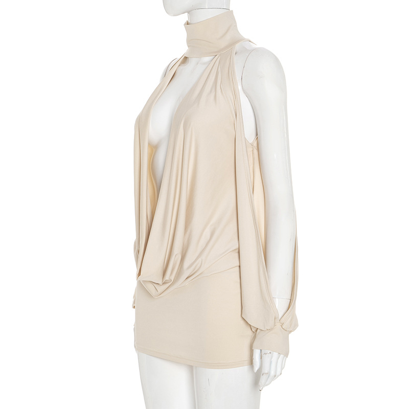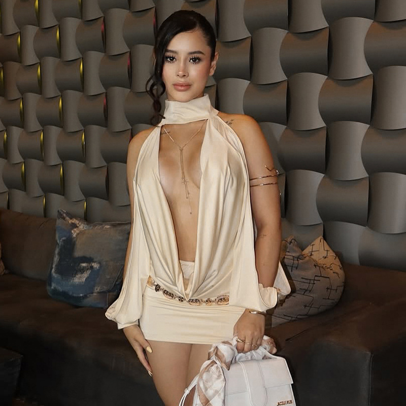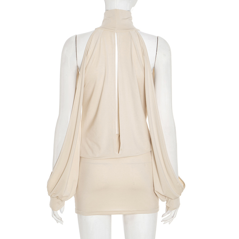 This Women's Autumn Solid Color Sexy Draped Neck Halter Neck Hollow Out Long Sleeve Bodycon Short Dress Design Made Of High Quality polyester And Spandex Material. It Is Stretchy, Durable And Comfortable. Casual Dresses With Long Sleeves Can Not Only Be Worn As Outerwear In Spring And Autumn, But Also Matching a Jacket In Winter, It Is a Must Have Item For Every Season. Grab Really Great Buy Casual Dresses For Women And Grow Your Business. No Moq In BamBam.