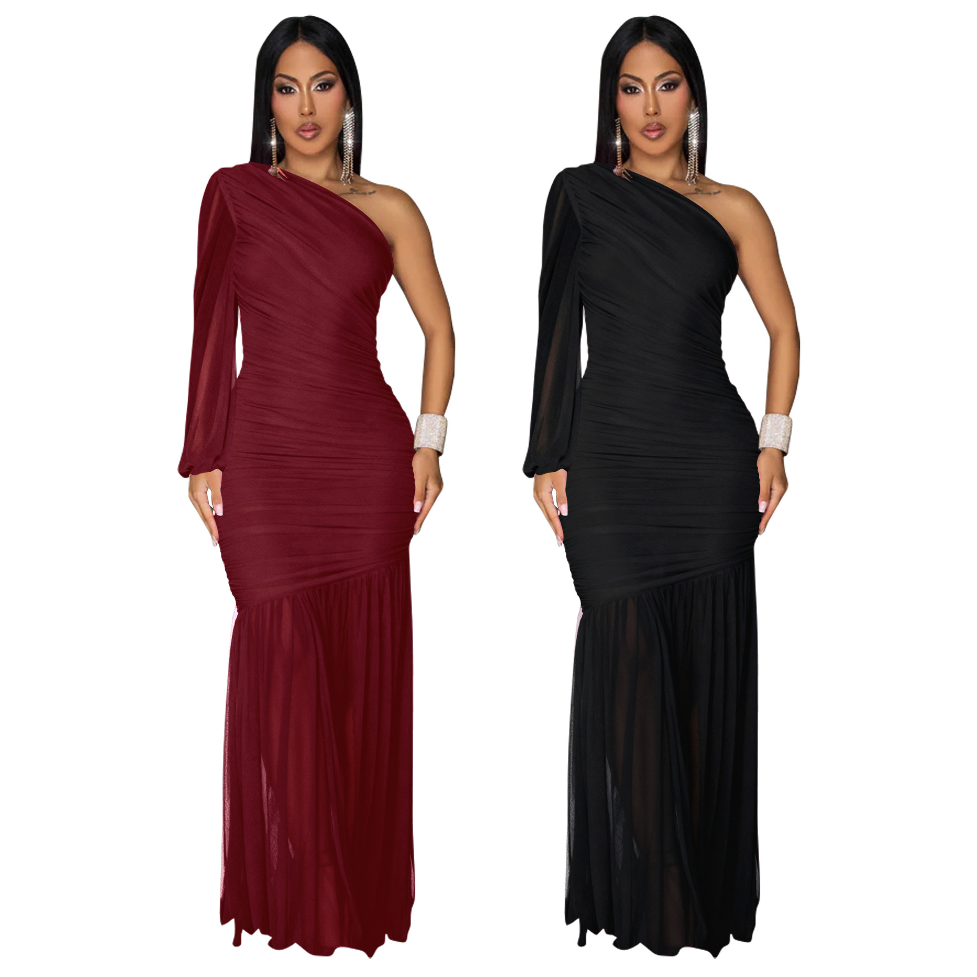 This Women's Autumn Solid One-Shoulder Slash Shoulder Pleated Mesh Long Dress Design Made Of High Quality polyester And Spandex Material. It smooth and stretchy And wears comfortably with a keen sense of freedom and ease. The Tight And Fitted Dress Is The Most Popular dress option for those that like to party hard. Shop Bodycon Dresses At BamBam And Find Amazing Designs Sequins, Beaded, Diamond, Crystals, Lace... BamBam retail Women Dresses Online Store is your one stop shop that helps By Providing Vary Dresses At quality and afforable prices with limitless variations.