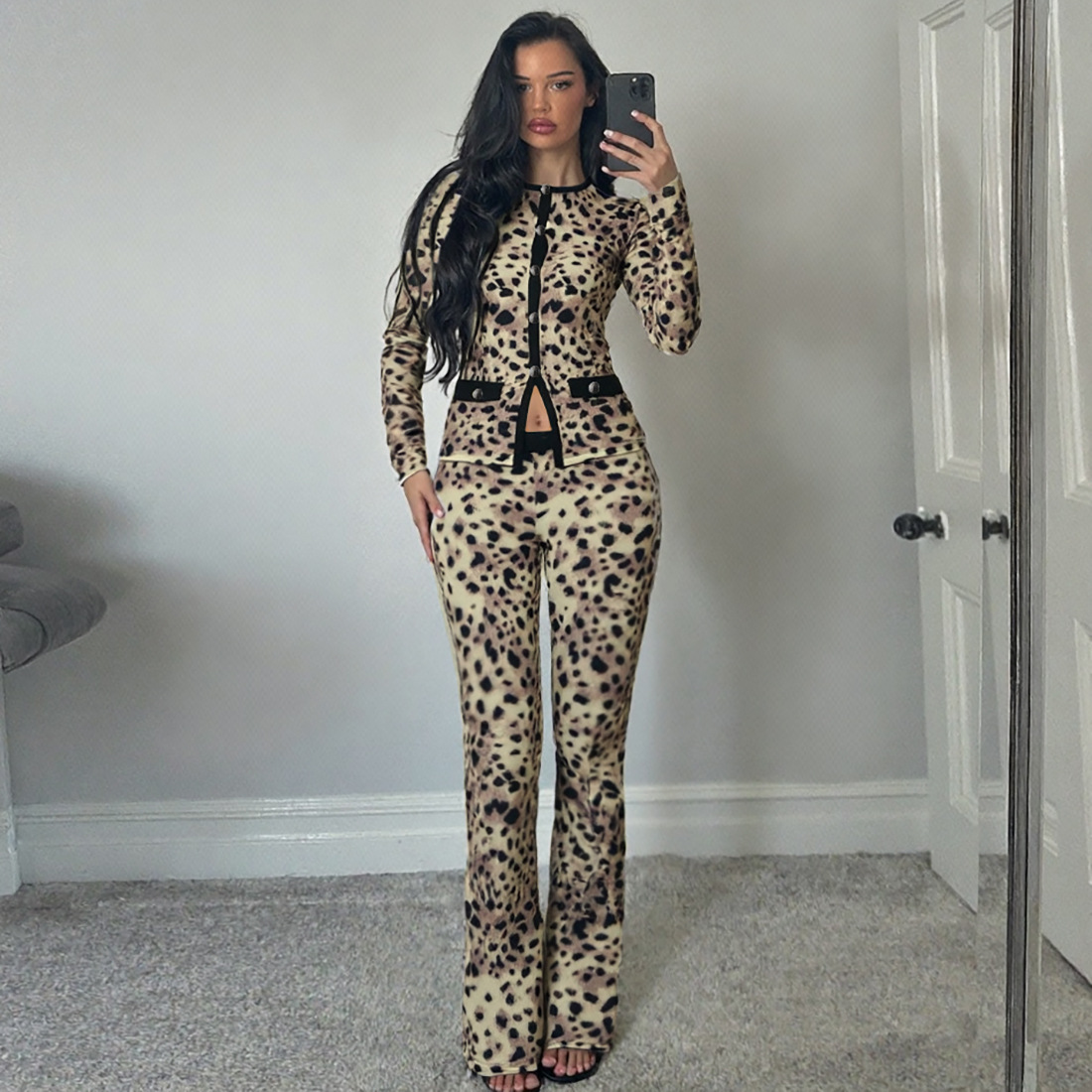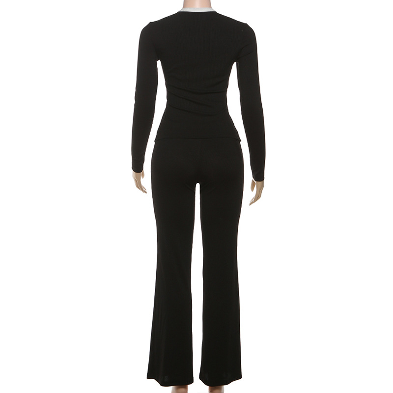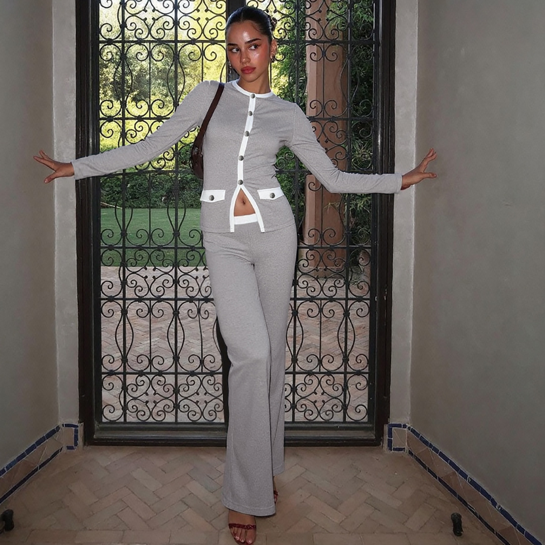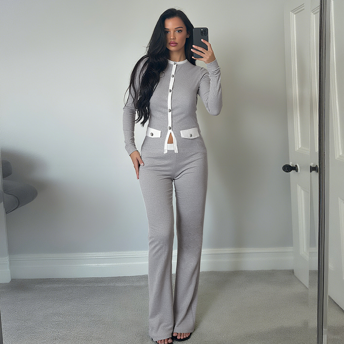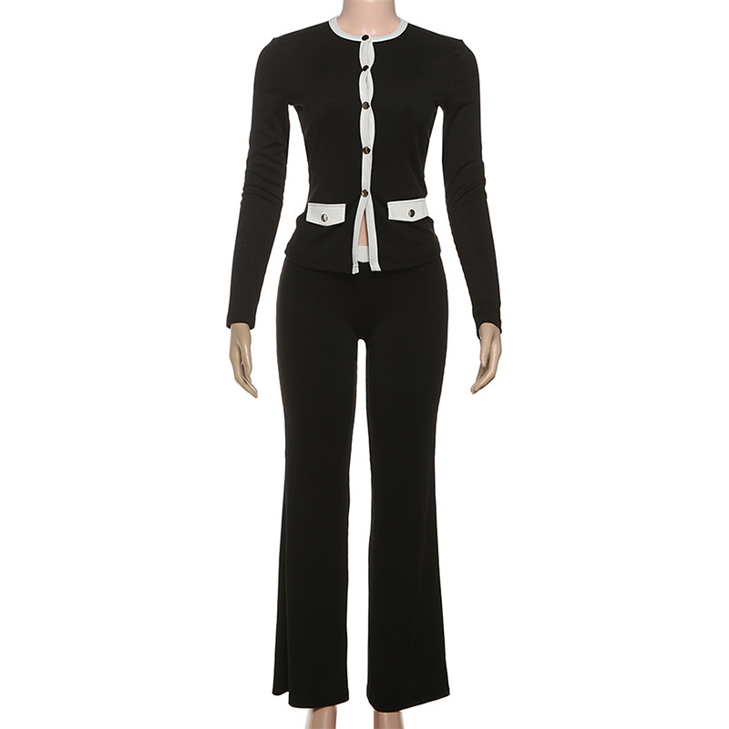 This Women's Autumn Style Round Neck Button Contrast Color Long Sleeve Top & High-Waist Slim Fit Pants Set Design Made Of High Quality polyester And Spandex Material. It Is Stretchy, Durable And Comfortable. It Is a Must-Have Outfit For All Seasons. retail Two Piece Pant Sets Can Solve Your cloth selection Troubles. Explore More 2 Piece Pants Set On BamBam retail Women Clothing Online Store.