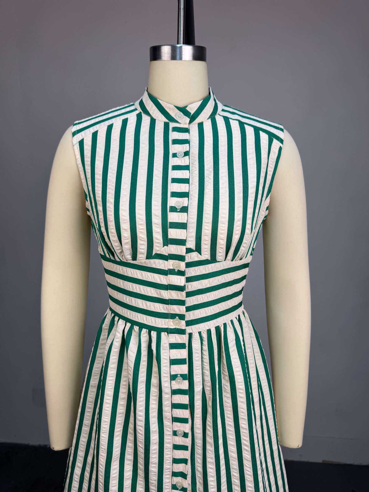 This Women's Autumn Sweet Striped Stand Collar Sleeveless Button-Down Dress Design Made Of High Quality polyester And Spandex Material. It Is Stretchy, Durable And Comfortable. Casual Dresses With Long Sleeves Can Not Only Be Worn As Outerwear In Spring And Autumn, But Also Matching a Jacket In Winter, It Is a Must Have Item For Every Season. Grab Really Great Buy Casual Dresses For Women And Grow Your Business. No Moq In BamBam.