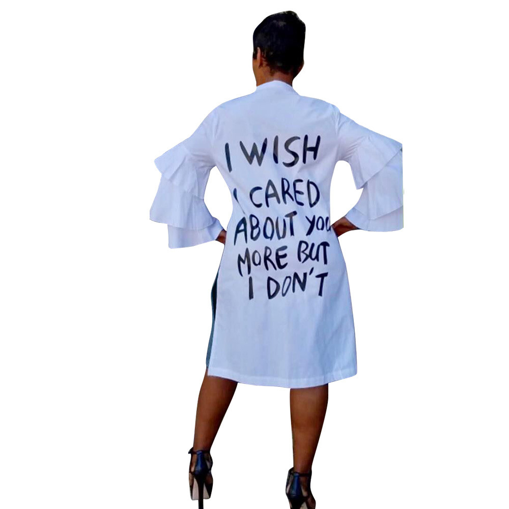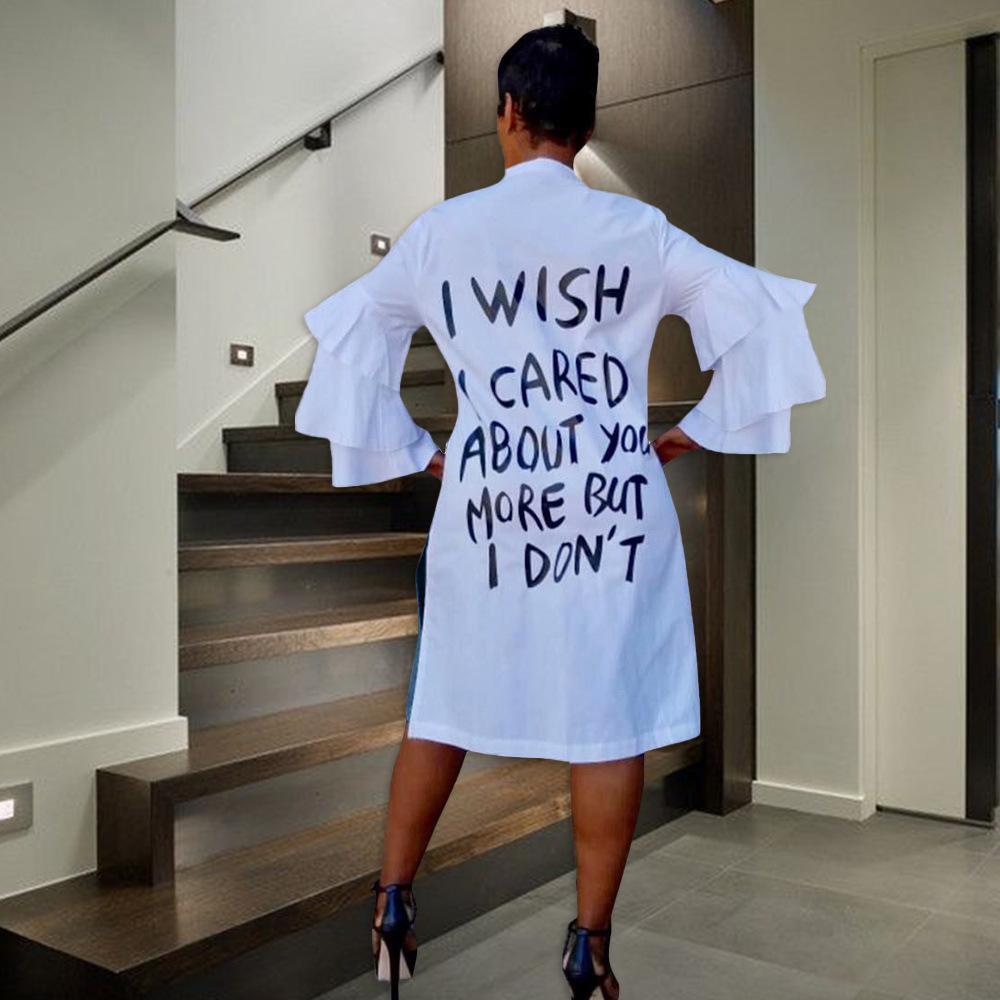 This Women's Autumn & Winter Letter Print Ruffle Sleeve Fashion Dress Design Made Of High Quality polyester And Spandex Material. It Is Stretchy, Durable And Comfortable. Casual Dresses With Long Sleeves Can Not Only Be Worn As Outerwear In Spring And Autumn, But Also Matching a Jacket In Winter, It Is a Must Have Item For Every Season. Grab Really Great Buy Casual Dresses For Women And Grow Your Business. No Moq In BamBam.