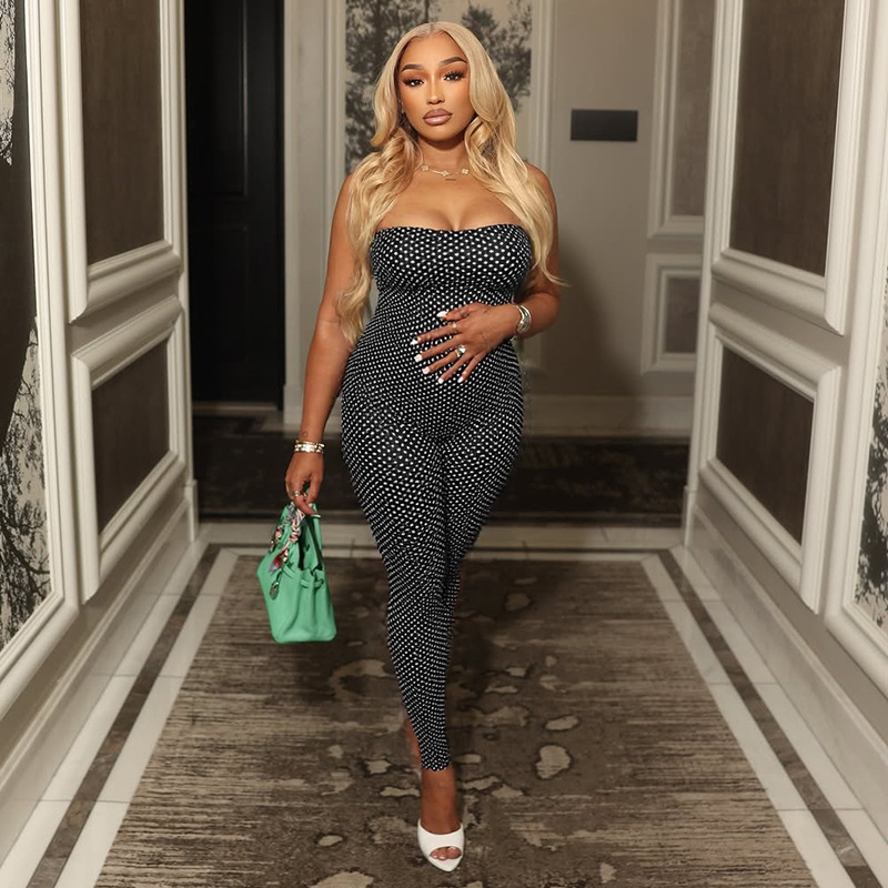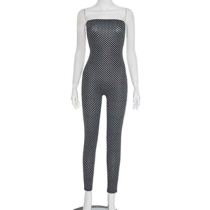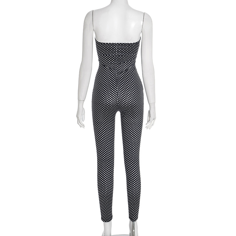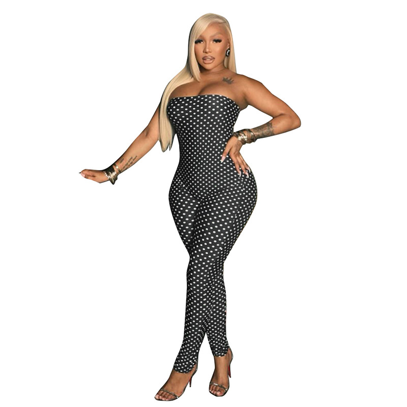 This Women's Autumn Winter Polka Dot Strapless Print Slim Fit Jumpsuit Design Made Of High Quality Polyster And Spandex Material. It Is Stretchy, Durable And Comfortable. Affordable Sexy Jumpsuits For Women Has Long Been a Party Favorite. BamBam provides a Rich selection Of Sequin, Beaded, See Through Mesh, Leopard, Floral Lace, Leather, Velvet, Tight And Fitted retail Jumpsuit Without Moq Limit.