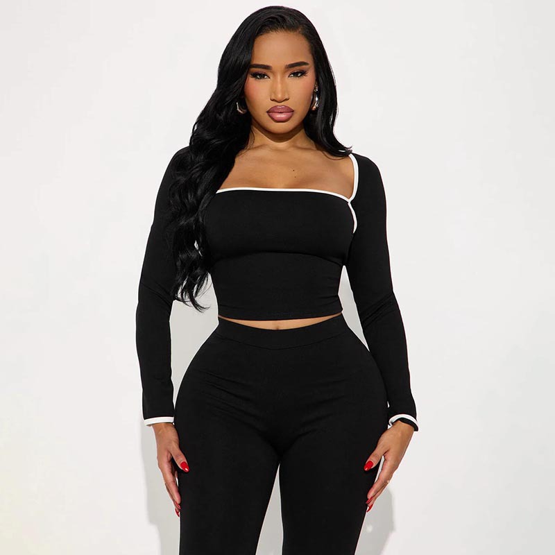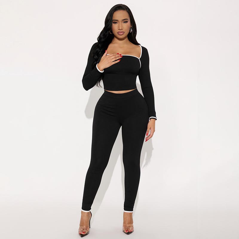 This Women's Autumn Winter Solid Color Patchwork Color Block Trim Long Sleeve Top Slim Pants Set Design Made Of High Quality polyester And Spandex Material. It Is Stretchy, Durable And Comfortable. It Is a Must-Have Outfit For All Seasons. retail Two Piece Pant Sets Can Solve Your cloth selection Troubles. Explore More 2 Piece Pants Set On BamBam retail Women Clothing Online Store.