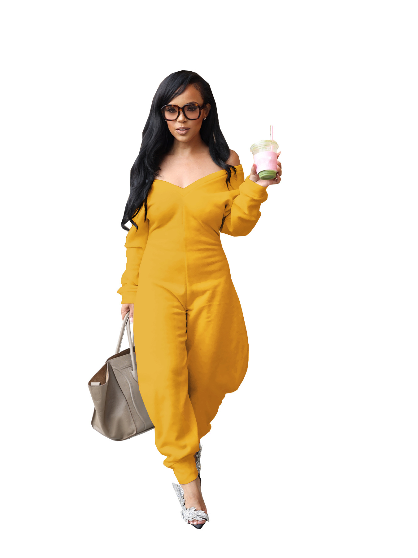 This Women's Autumn Winter Solid Color v-Neck Sexy Long Sleeve Jumpsuit Design Made Of High Quality Polyster And Spandex Material. It Is Stretchy, Durable And Comfortable. Affordable Sexy Jumpsuits For Women Has Long Been a Party Favorite. BamBam provides a Rich selection Of Sequin, Beaded, See Through Mesh, Leopard, Floral Lace, Leather, Velvet, Tight And Fitted retail Jumpsuit Without Moq Limit.