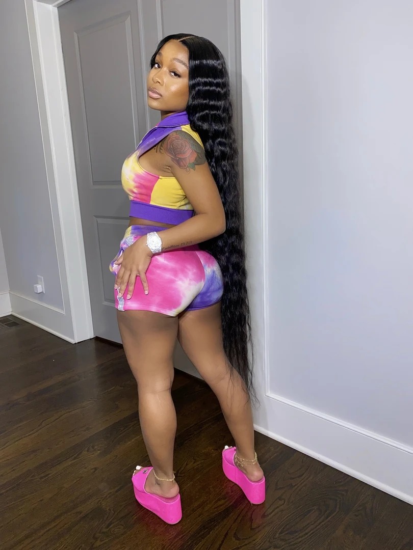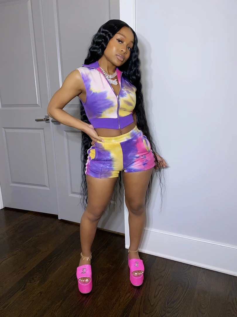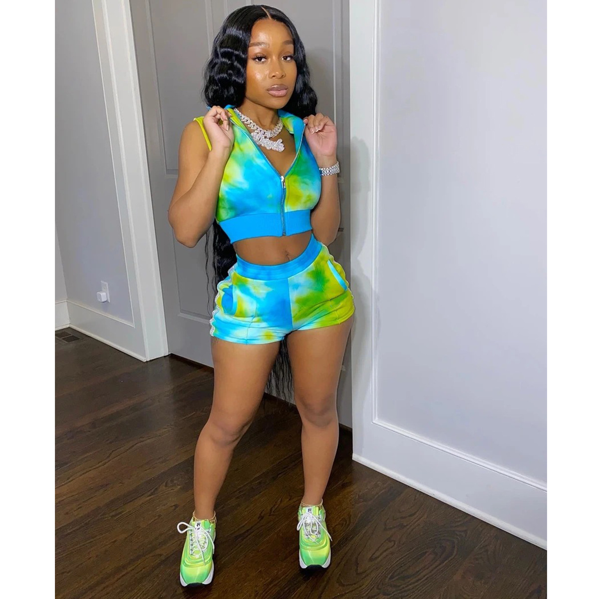 This Women's Beaded Sleeveless Sexy Tie-Dye Two-Piece Shorts Set Design Made Of High Quality polyester And Spandex Material. It Is Stretchy, Durable And Comfortable. It Come With The Top And Shorts. retail Short Sets Saves Some People From The Trouble Of Matching. And For Matchmakers It Is More Flexible Than One-Piece Outfit. Two Piece Short Set Can Be Worn Together Or Individually, Ladies Can Match Them According To Different Occasions. Grab Different Two Piece Short Sets For This Spring And Summer.