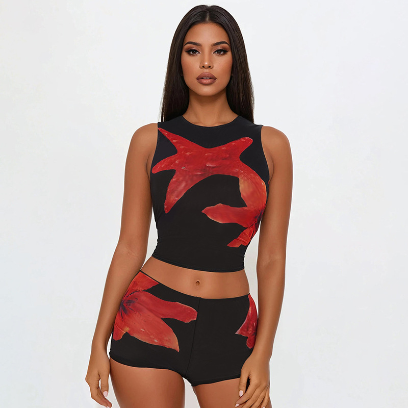 This Women's Casual Starfish Print Round Neck Sleeveless Crop Top & Shorts Set Design Made Of High Quality polyester And Spandex Material. It Is Stretchy, Durable And Comfortable. It Come With The Top And Shorts. retail Short Sets Saves Some People From The Trouble Of Matching. And For Matchmakers It Is More Flexible Than One-Piece Outfit. Two Piece Short Set Can Be Worn Together Or Individually, Ladies Can Match Them According To Different Occasions. Grab Different Two Piece Short Sets For This Spring And Summer.