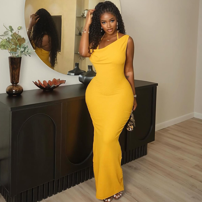 This Women's Chic Elegant Halter-Neck Low-Back Solid Color Slit Maxi Dress Design Made Of High Quality polyester And Spandex Material. It smooth and stretchy And wears comfortably with a keen sense of freedom and ease. The Tight And Fitted Dress Is The Most Popular dress option for those that like to party hard. Shop Bodycon Dresses At BamBam And Find Amazing Designs Sequins, Beaded, Diamond, Crystals, Lace... BamBam retail Women Dresses Online Store is your one stop shop that helps By Providing Vary Dresses At quality and afforable prices with limitless variations.