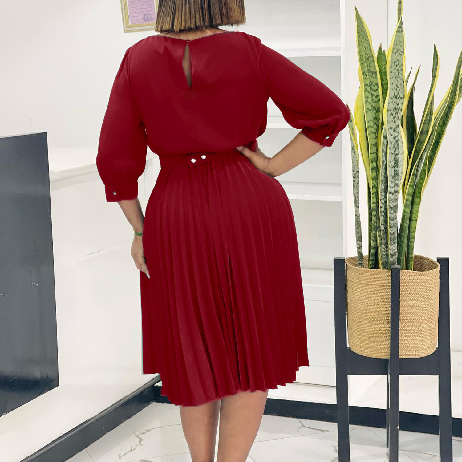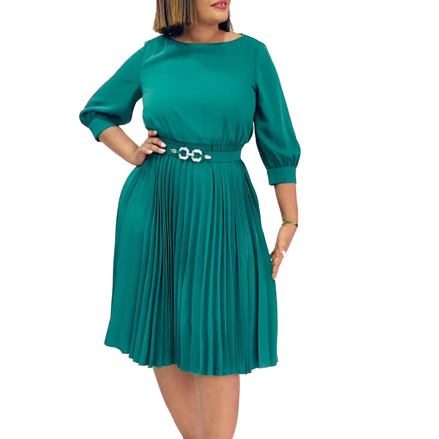 This Women's Chic Fashion Elegant Round Neck Three-Quarter Sleeve Pleated African Dress Design Made Of High Quality polyester And Spandex Material. It's nice and stretchy, feels and wears comfortably on your body. Women’s Midi dresses suits all Kinds Of Occasions - Daily Wear, Go To The Church, Commuting And Events Occasion. Midi Dresses can't be Boring, Find Best Midi Dresses At BamBam With Trendy Styles.