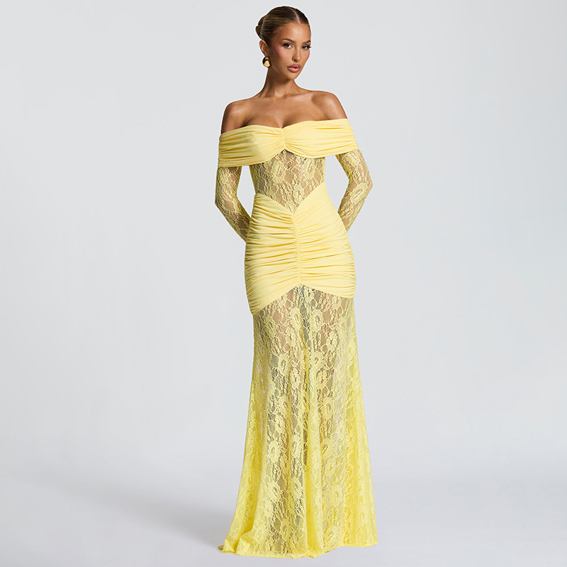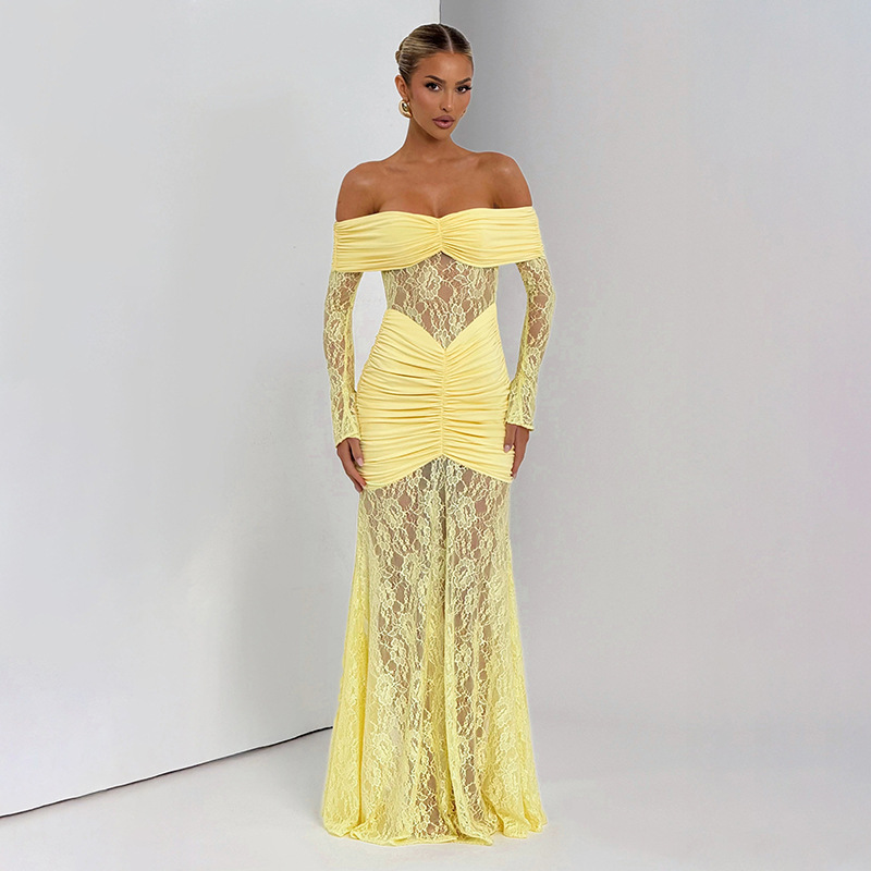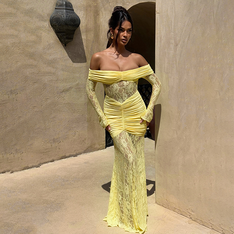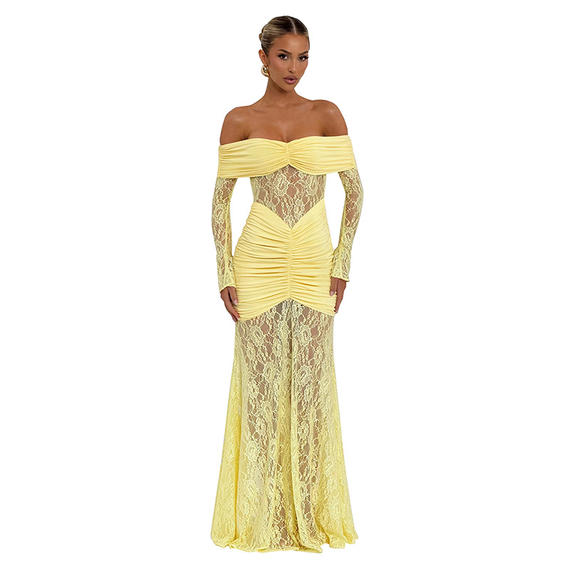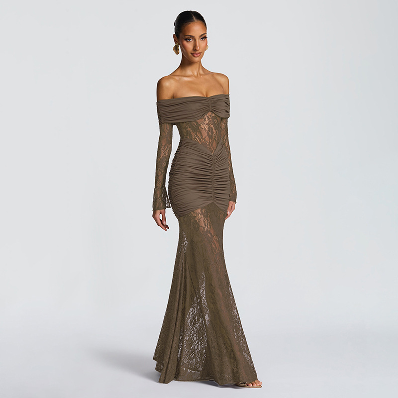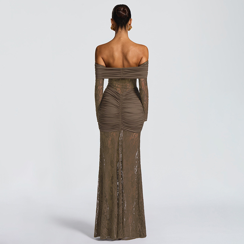 This Women's Chic Lace Patchwork Off-Shoulder Slit Long Sleeve Ruffle Maxi Dress Design Made Of Good Quality Polyester And Spandex Material, Which Is Stretchy, Durable And Comfortable. The Long Evening Dresses And Gowns Is Always The main Choice For All Kinds Of Parties, Cocktail, Prom, Events, And Dating Occasions. Evening Gowns At BamBam Comes With Huge Selections - Sequins, Beaded, Satin, Velvet, Lace.... When You Need retail Evening Dresses, BamBam retail Women Garment Online Shop Is Your One-Stop Online Shopping Choice.