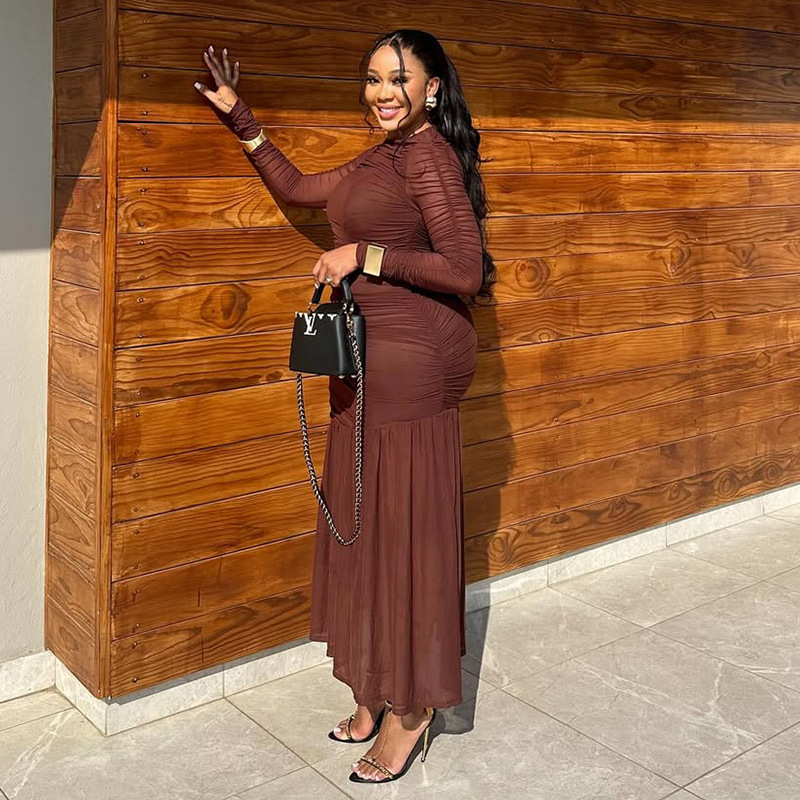 This Women's Chic Slim Waist Solid High Neck Long-Sleeve Ruched Long Dress Design Made Of High Quality polyester And Spandex Material. It smooth and stretchy And wears comfortably with a keen sense of freedom and ease. The Tight And Fitted Dress Is The Most Popular dress option for those that like to party hard. Shop Bodycon Dresses At BamBam And Find Amazing Designs Sequins, Beaded, Diamond, Crystals, Lace... BamBam retail Women Dresses Online Store is your one stop shop that helps By Providing Vary Dresses At quality and afforable prices with limitless variations.