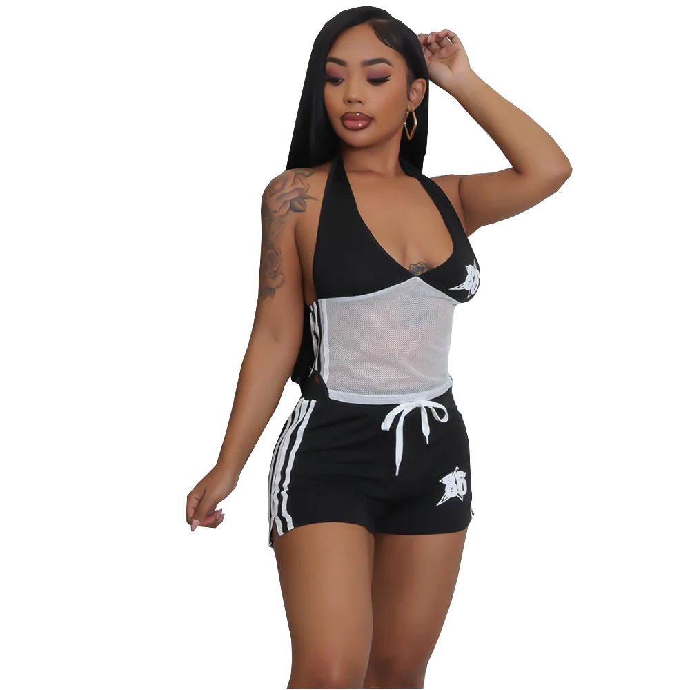 This Women's Crop Hollow Contrast Low-Back Vest Shorts Two-Piece Set Design Made Of High Quality polyester And Spandex Material. It Is Stretchy, Durable And Comfortable. It Come With The Top And Shorts. retail Short Sets Saves Some People From The Trouble Of Matching. And For Matchmakers It Is More Flexible Than One-Piece Outfit. Two Piece Short Set Can Be Worn Together Or Individually, Ladies Can Match Them According To Different Occasions. Grab Different Two Piece Short Sets For This Spring And Summer.