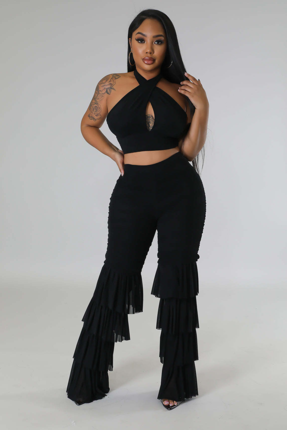 This Women's Cross Halter Neck Solid Color Top Sexy Slim Mesh Tassel Pants Two Piece Set Design Made Of High Quality polyester And Spandex Material. It Is Stretchy, Durable And Comfortable. It Is a Must-Have Outfit For All Seasons. retail Two Piece Pant Sets Can Solve Your cloth selection Troubles. Explore More 2 Piece Pants Set On BamBam retail Women Clothing Online Store.