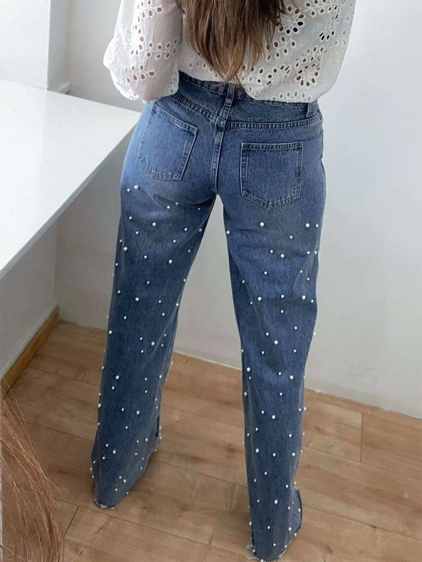 This Women's Denim Beaded Furry Edge High Stretch Straight Leg Pants Design Made Of Durable And Stretchy Jeans Fabric. It Is a Must-Have Item For everyday use. Trendy retail Jeans Is a Indispensable Item For Everyday Fashion. Women’s Jeans With High Waist Is a Must Have trouser/pant that helps bring the grace of shape of your legs out even more and fits perfectly snugging your thighs and body gracefully. Grab a Must Have High Waist Jeans retail For Your Closet, Just Choose Different Matching Tops To stay in control of Every Occasion Easily.