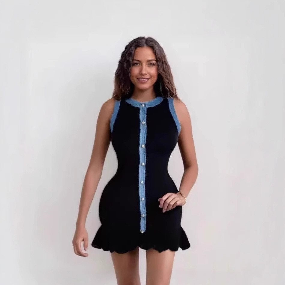 This Women's Denim Trim Knit Short Sleeve Sleeveless Dress combines warmth with fashion. It Is a Must-Have Item For This Winter. Sweater Dresses For Women At BamBam are used for Different Occasions - Daily Life, Party Knitting Dresses, And Sweater Dresses For Work. When You Need retail Sweater Dresses, You Can Always Find What You Need On Our retail Female Garment Online Store.