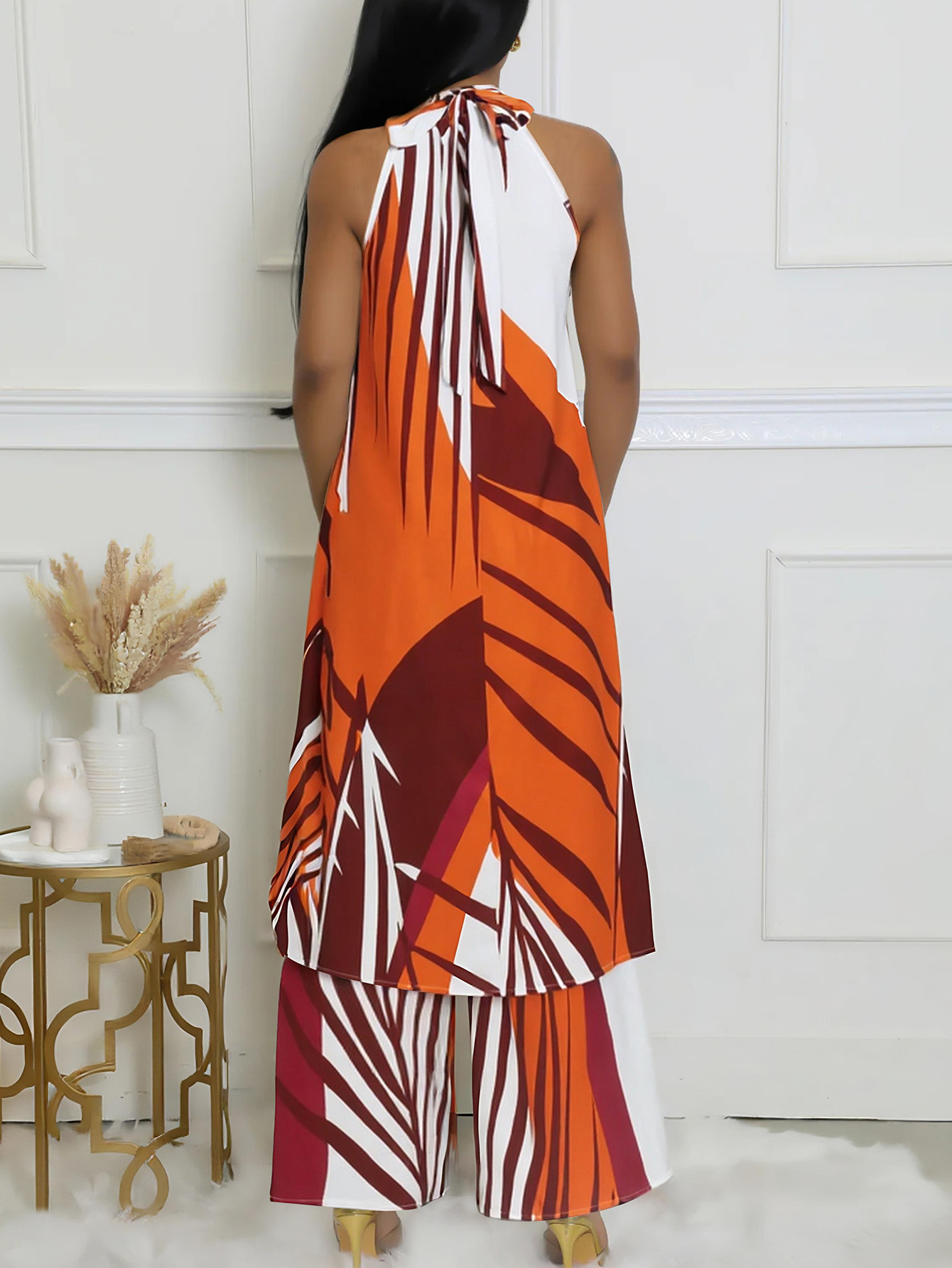 This Women's Elegant Halter-Neck Sleeveless Irregular Top With Loose Trousers Two Piece Set Design Made Of High Quality polyester And Spandex Material. It Is Stretchy, Durable And Comfortable. It Is a Must-Have Outfit For All Seasons. retail Two Piece Pant Sets Can Solve Your cloth selection Troubles. Explore More 2 Piece Pants Set On BamBam retail Women Clothing Online Store.