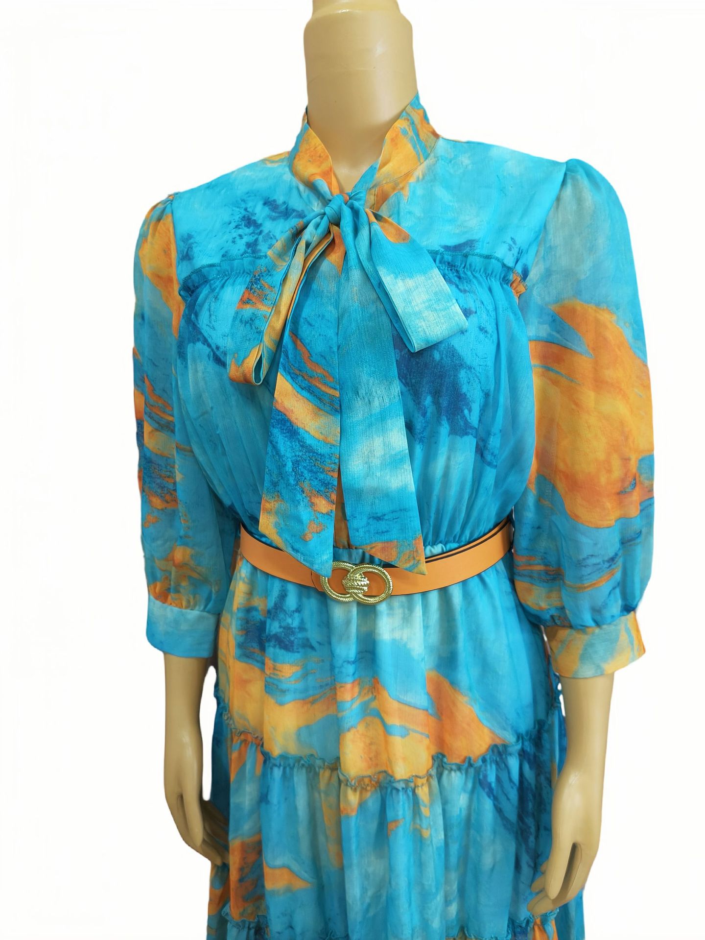 This Women's Fashion Bow Collar Color-Block Pleated Print Dress With Belt Design Made Of High Quality polyester And Spandex Material, Which Is Stretchy, Soft And Comfortable. It's Always On Trend. This Casual Maxi Dresses Is a Must-Have For Vocations And Dating Occasions. Maxi Dresses At BamBam Comes With Huge Selections Of Colors, Sizes, Material, And Designs. When You Need retail affordable Maxi Dresses, You Can Always Find Vary Collection And No Moq On Our retail Women Fashion Online Store.