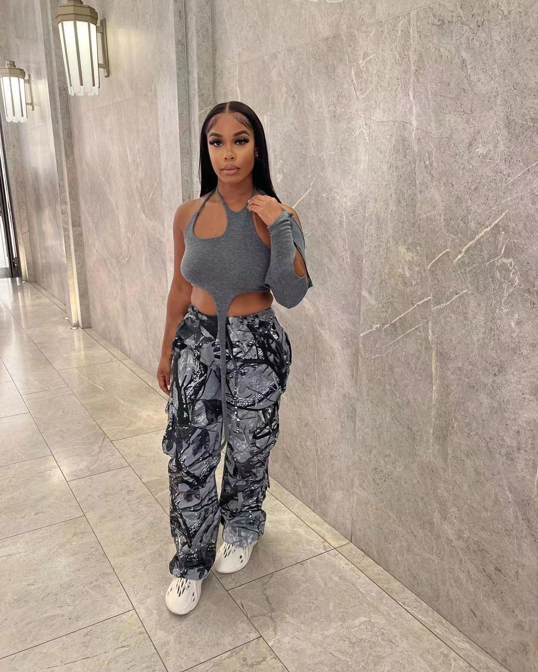 This Women's Fashion Casual Camouflage Print Cargo Pants Design Made Of Durable And Stretchy Material. It Is a Must-Have Item For daily use. Women Casual Pants retail At BamBam Has Wide Range Selections On Colors, Material, Print, And Designs. Ladies Can Always Find Her Right Trousers Here - No One Can Refuse The Temptation Of Sexy Leather Pants. Cool Jeans Trousers Is a Must-Have Item For Ladies No Matter What Age. Flared Pants Is Here Again, Becoming One Of The Icons Of Fashion Once Again. When You Need More retail Women Trousers, You Can Always Find What You Need On Our retail Women Clothing Online Store.