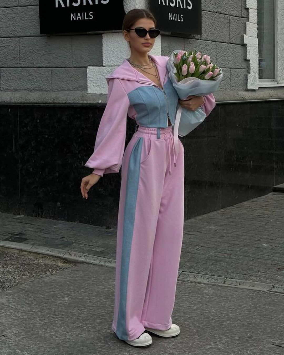 This Women's Fashion Casual Hoodies Set Denim Patchwork Hooded Top And Pants Two-Piece Set Design Made Of High Quality polyester And Spandex Material. It Is Stretchy, Durable And Comfortable. It Is a Must-Have Outfit For All Seasons. retail Two Piece Pant Sets Can Solve Your cloth selection Troubles. Explore More 2 Piece Pants Set On BamBam retail Women Clothing Online Store.