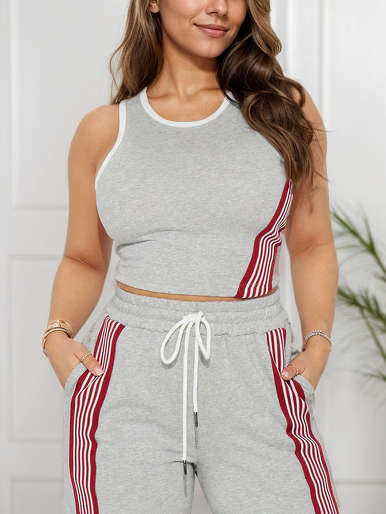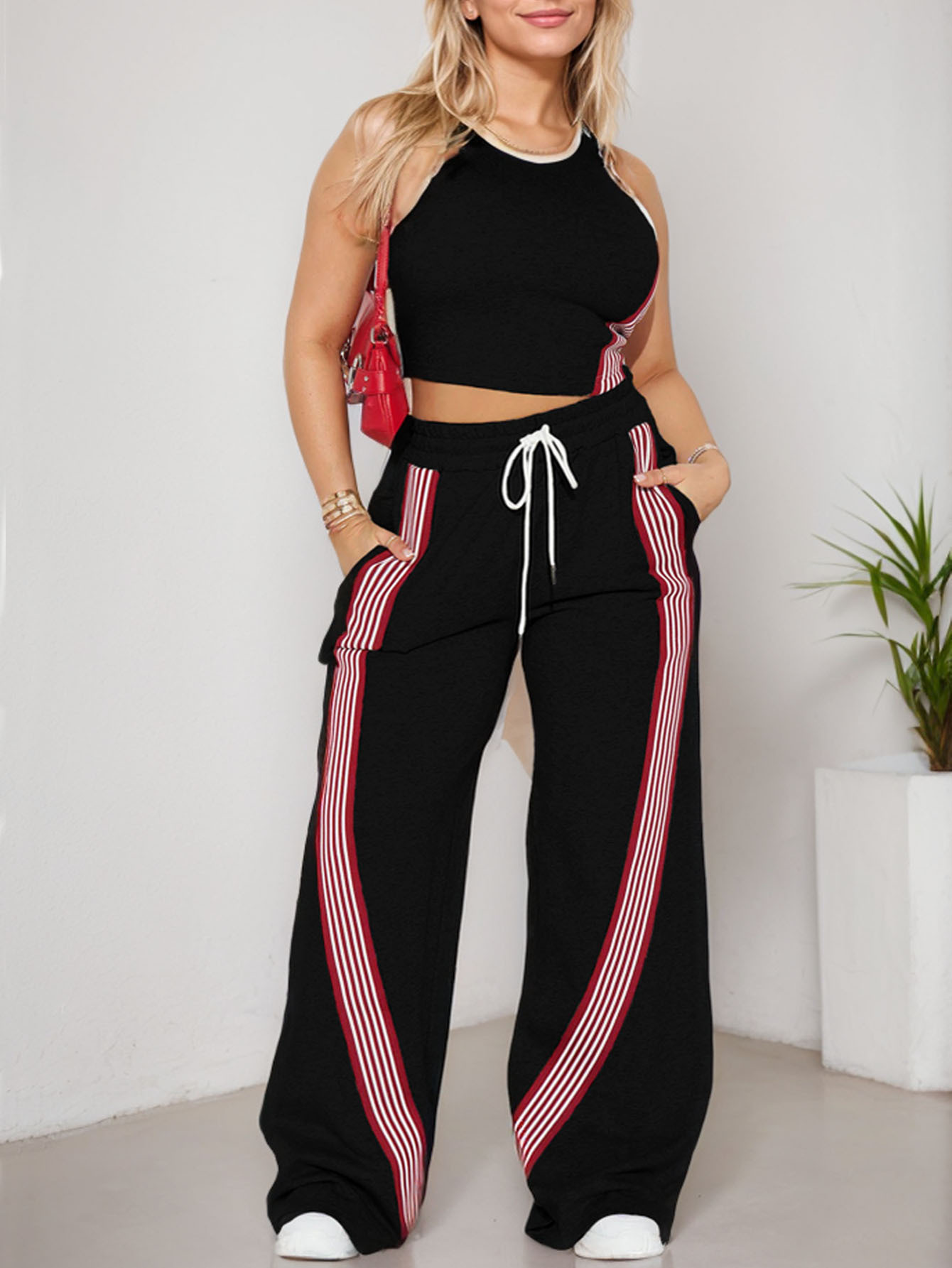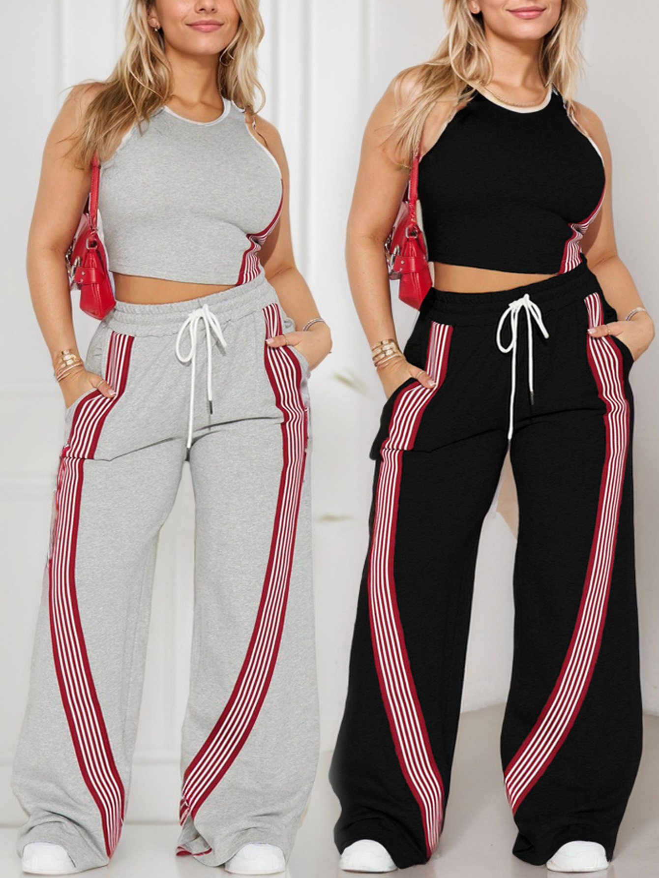 This Women's Fashion Casual Slim Ribbon Patchwork Vest Casual Wide Leg Pants Two Piece Set Sports Women's Wear Design Made Of High Quality polyester And Spandex Material. It Is Stretchy, Durable And Comfortable. It Is a Must-Have Outfit For All Seasons. retail Two Piece Pant Sets Can Solve Your cloth selection Troubles. Explore More 2 Piece Pants Set On BamBam retail Women Clothing Online Store.