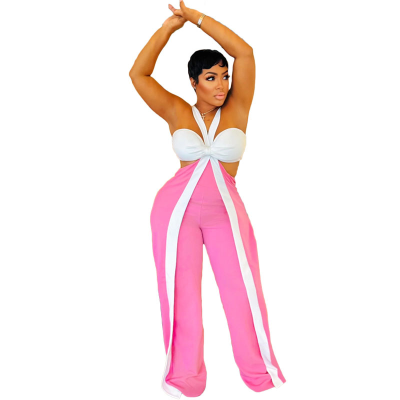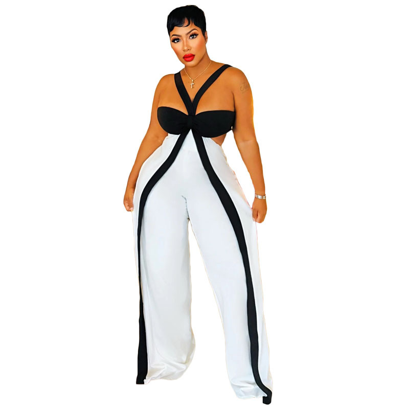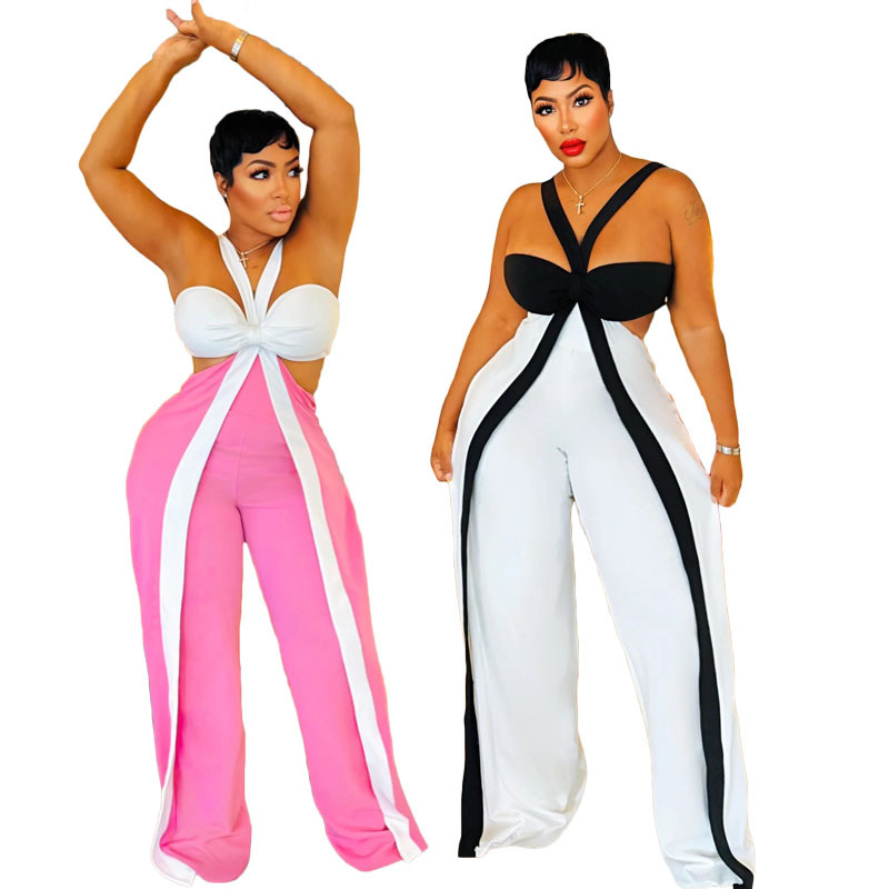 This Women's Fashion Color-Block Low-Cut v-Neck Sexy Wide-Leg Jumpsuit Design Made Of High Quality Polyster And Spandex Material. It Is Stretchy, Durable And Comfortable. Affordable Sexy Jumpsuits For Women Has Long Been a Party Favorite. BamBam provides a Rich selection Of Sequin, Beaded, See Through Mesh, Leopard, Floral Lace, Leather, Velvet, Tight And Fitted retail Jumpsuit Without Moq Limit.