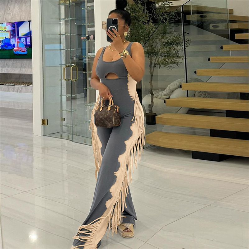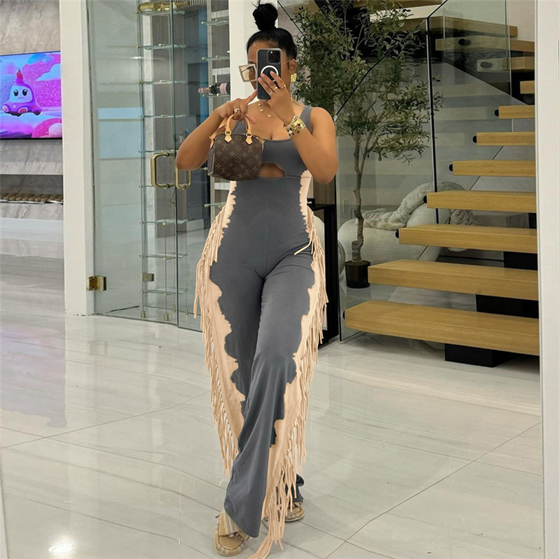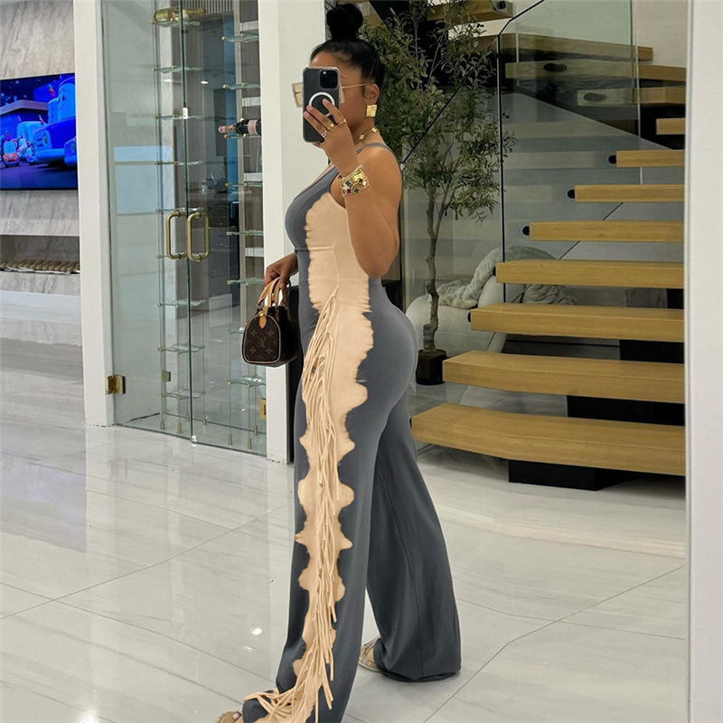 This Women's Fashion Contrast Color Tassel Casual Jumpsuit Design Made Of High Quality Polyster And Spandex Material. It Is Stretchy, Durable And Comfortable. Affordable Sexy Jumpsuits For Women Has Long Been a Party Favorite. BamBam provides a Rich selection Of Sequin, Beaded, See Through Mesh, Leopard, Floral Lace, Leather, Velvet, Tight And Fitted retail Jumpsuit Without Moq Limit.