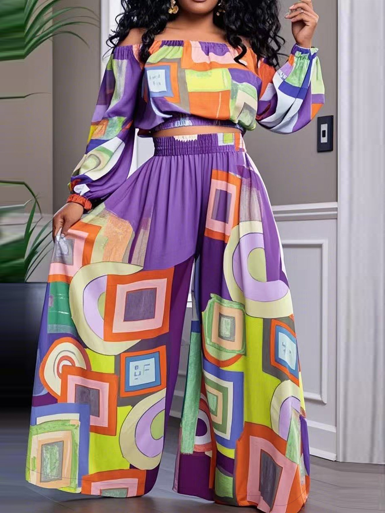 This Women's Fashion Elegant Off Shoulder Long Sleeve Top Loose Wide Leg Pants Casual Set Design Made Of High Quality polyester And Spandex Material. It Is Stretchy, Durable And Comfortable. It Is a Must-Have Outfit For All Seasons. retail Two Piece Pant Sets Can Solve Your cloth selection Troubles. Explore More 2 Piece Pants Set On BamBam retail Women Clothing Online Store.