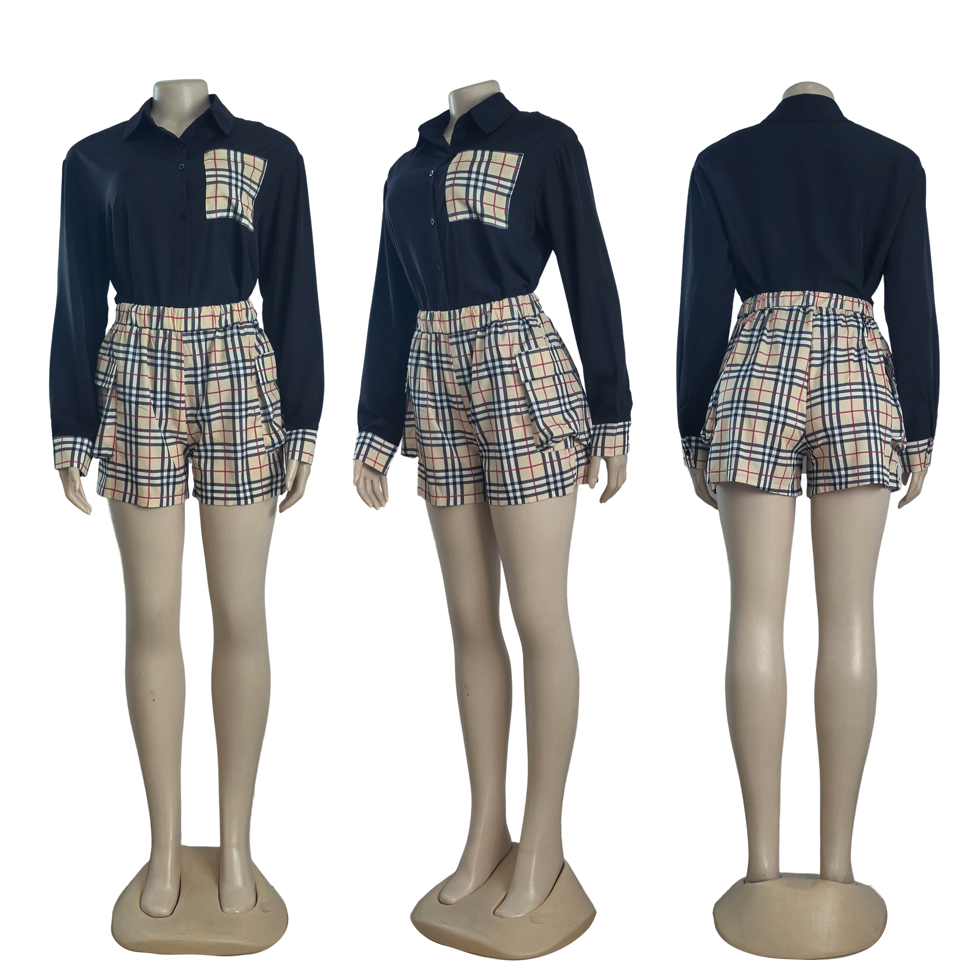 This Women's Fashion Fitted Shirt Multi-Pocket Checkered Shorts Set Design Made Of High Quality polyester And Spandex Material. It Is Stretchy, Durable And Comfortable. It Come With The Top And Shorts. retail Short Sets Saves Some People From The Trouble Of Matching. And For Matchmakers It Is More Flexible Than One-Piece Outfit. Two Piece Short Set Can Be Worn Together Or Individually, Ladies Can Match Them According To Different Occasions. Grab Different Two Piece Short Sets For This Spring And Summer.