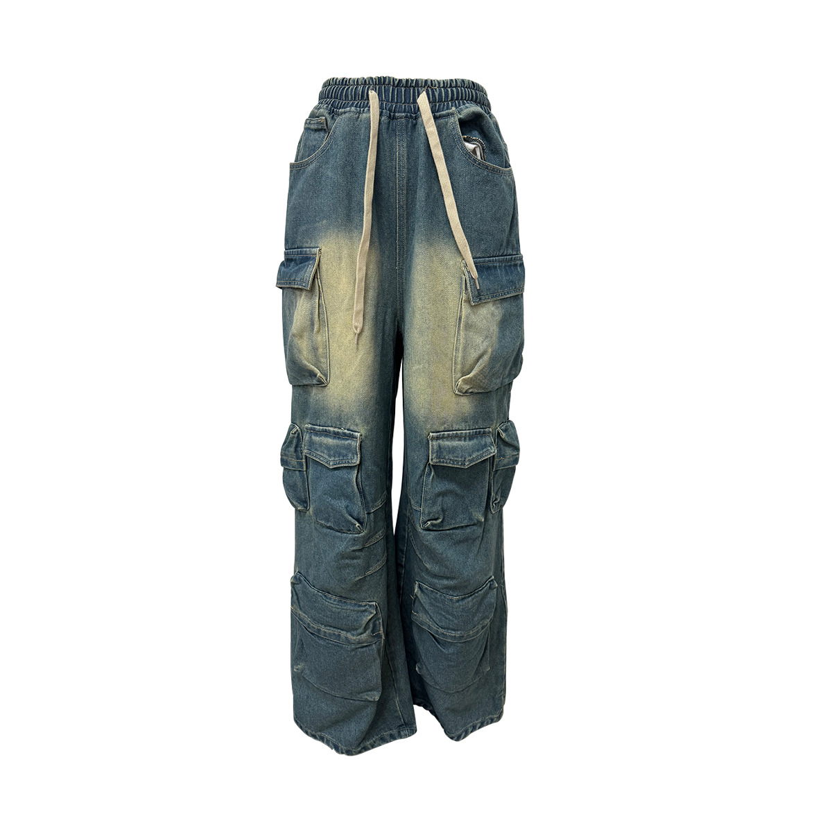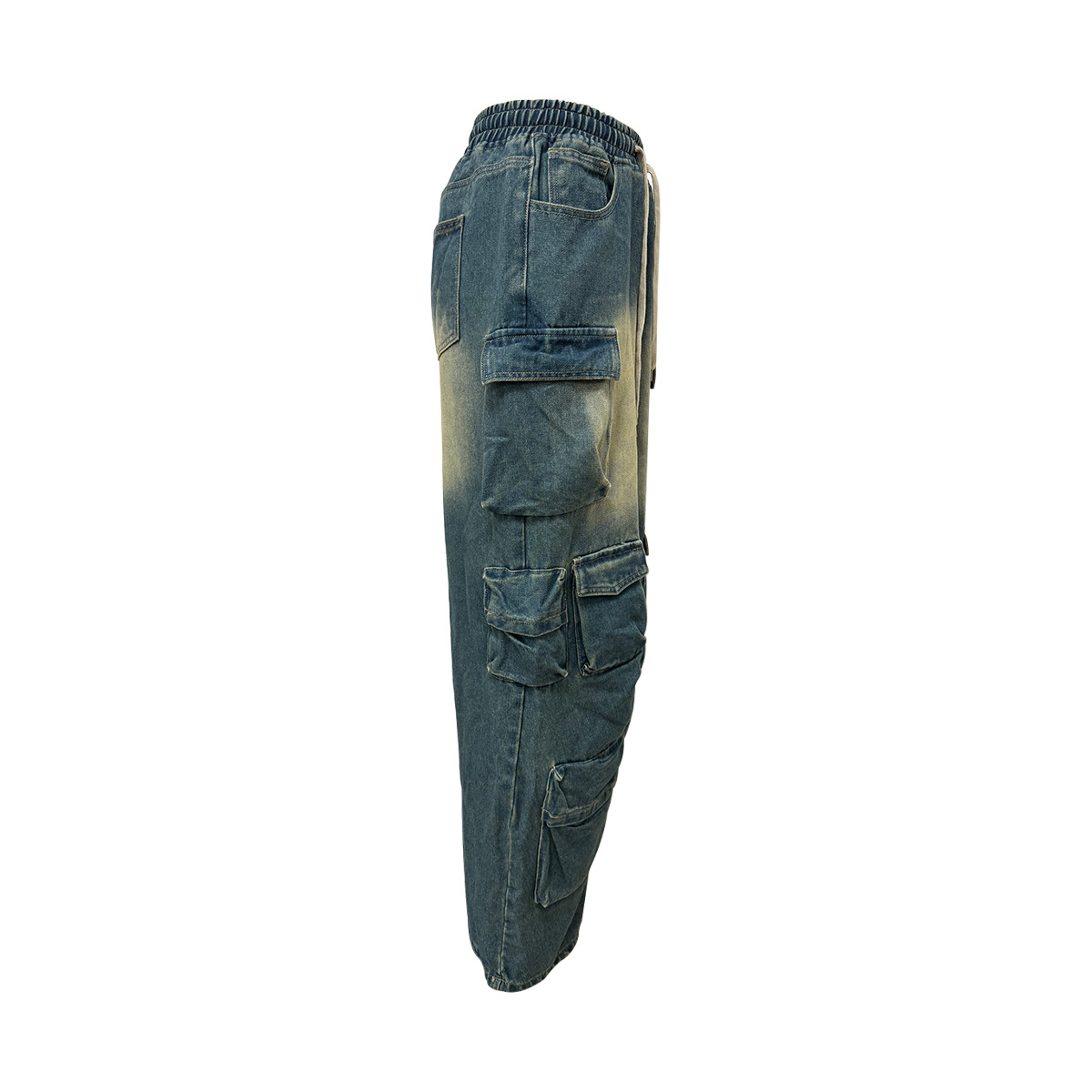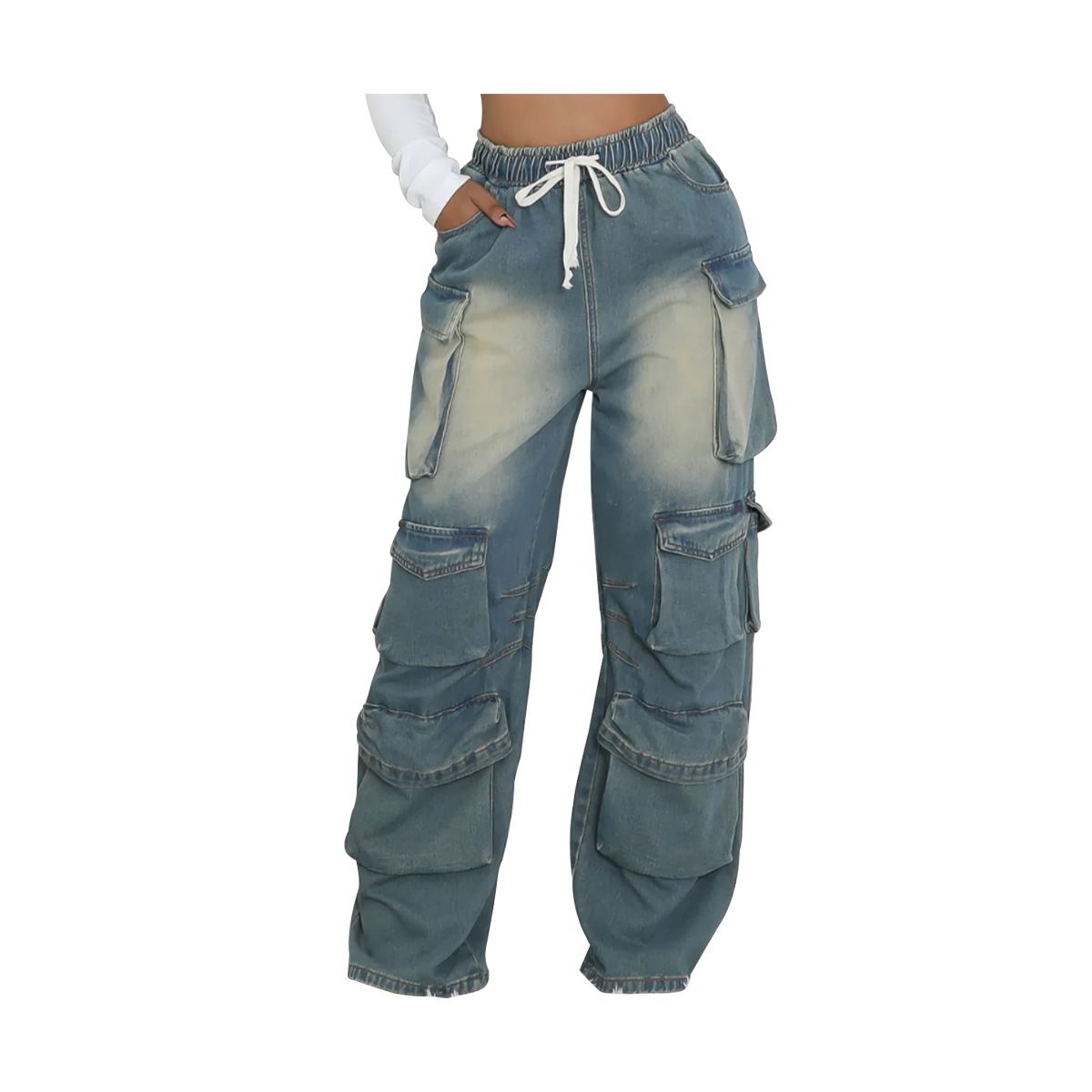 This Women's Fashion Loose Straight Leg Washed Multi-Pocket Elastic Waist Street Denim Pants Design Made Of Durable And Stretchy Jeans Fabric. It Is a Must-Have Item For everyday use. Trendy retail Jeans Is a Indispensable Item For Everyday Fashion. Women’s Jeans With High Waist Is a Must Have trouser/pant that helps bring the grace of shape of your legs out even more and fits perfectly snugging your thighs and body gracefully. Grab a Must Have High Waist Jeans retail For Your Closet, Just Choose Different Matching Tops To stay in control of Every Occasion Easily.