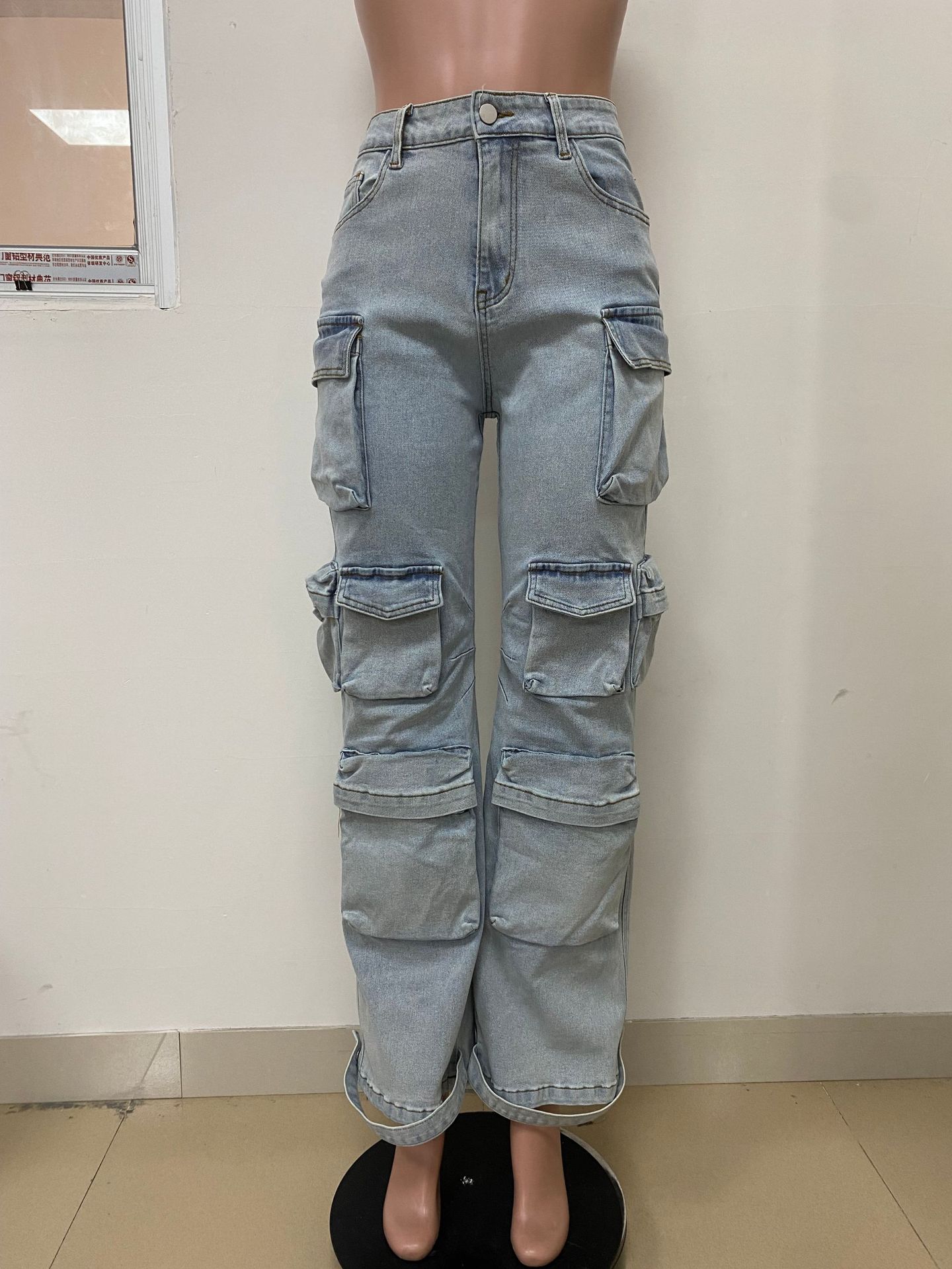 This Women's Fashion Loose Straight Leg Washed Multi-Pocket Fashion Street Denim Pants Design Made Of Durable And Stretchy Jeans Fabric. It Is a Must-Have Item For everyday use. Trendy retail Jeans Is a Indispensable Item For Everyday Fashion. Women’s Jeans With High Waist Is a Must Have trouser/pant that helps bring the grace of shape of your legs out even more and fits perfectly snugging your thighs and body gracefully. Grab a Must Have High Waist Jeans retail For Your Closet, Just Choose Different Matching Tops To stay in control of Every Occasion Easily.