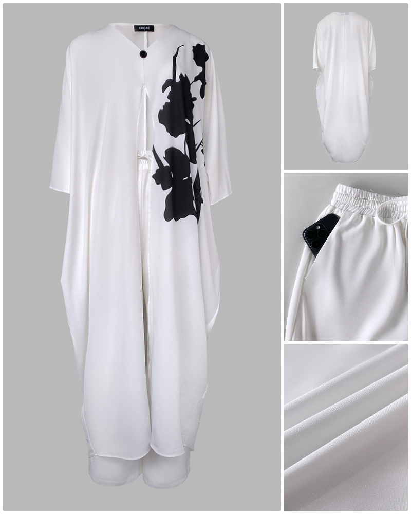 This Women's Fashion Printed v-Neck Loose Long Sleeve Blouse Wide-Leg Pants Set Design Made Of High Quality polyester And Spandex Material. It Is Stretchy, Durable And Comfortable. It Is a Must-Have Outfit For All Seasons. retail Two Piece Pant Sets Can Solve Your cloth selection Troubles. Explore More 2 Piece Pants Set On BamBam retail Women Clothing Online Store.