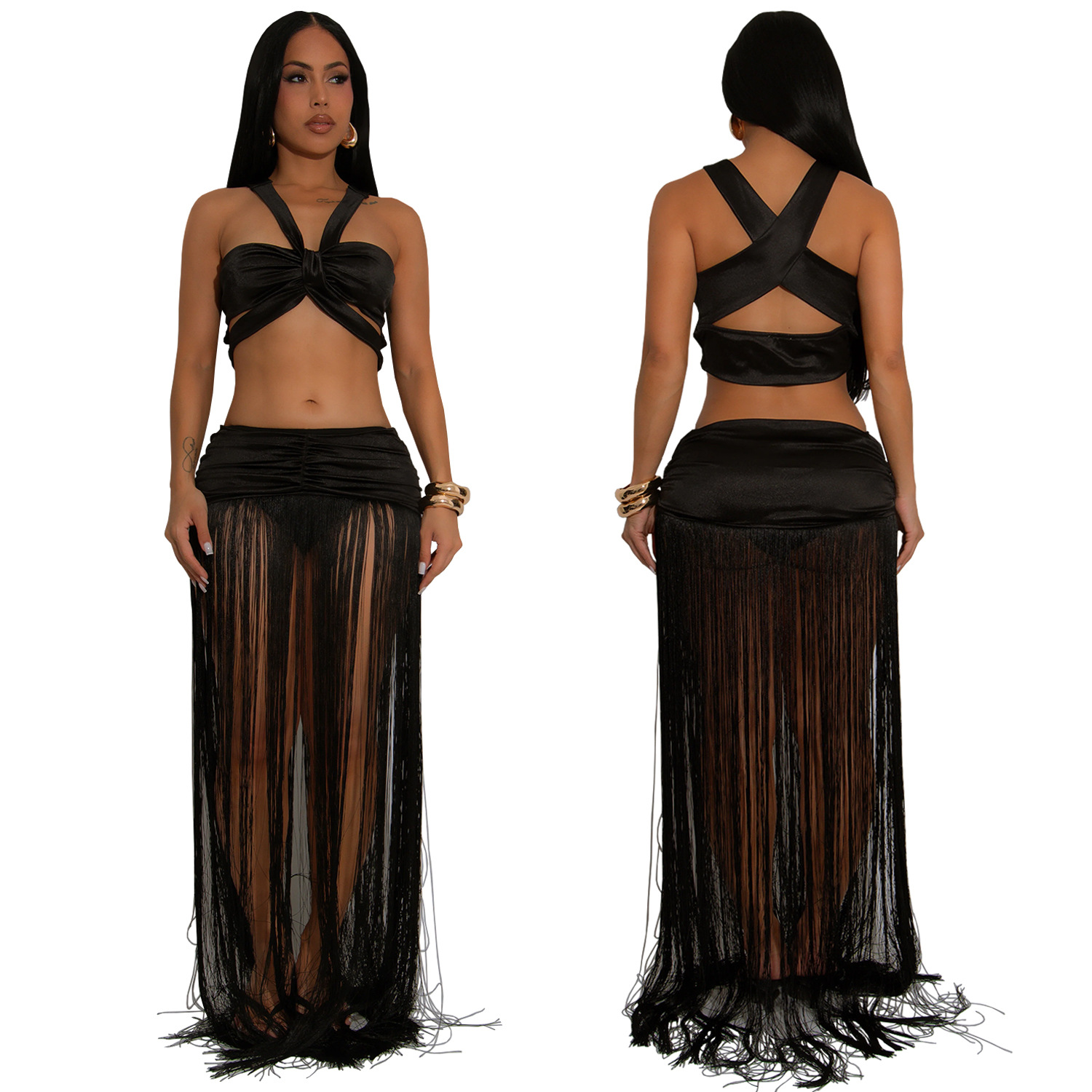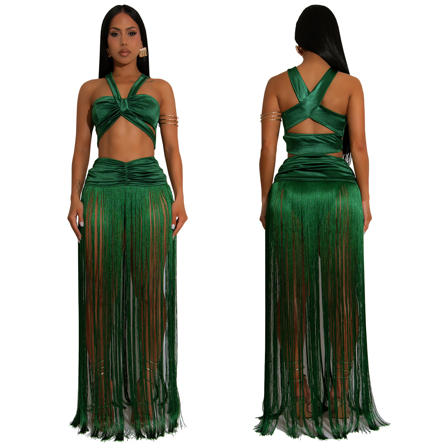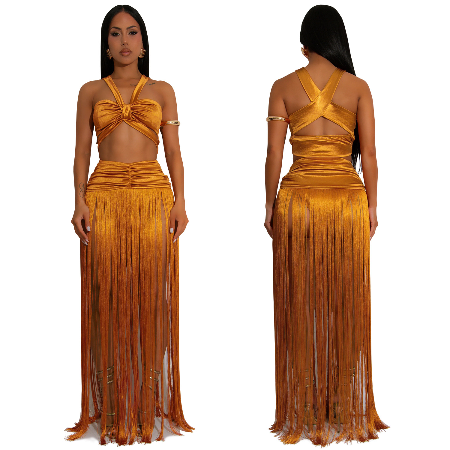 This Women's Fashion Sexy Strap Top & Fringe Long Skirt Two-Piece Set Design Made Of High Quality polyester And Spandex Material. It Is Stretchy, Durable And Comfortable. It Come With The Top And Skirt Matching Set. Women’s Skirt Suit Sets Is a Great Alternative To One Piece Outfit. It Can Either Be Worn Together Or Individually, So You Can Combine Them Endlessly. Grab Different Two Piece Skirt Set retail On Our Website a Women's Clothing Store Online At Really affordable price And Enjoy fast delivery worldwide.