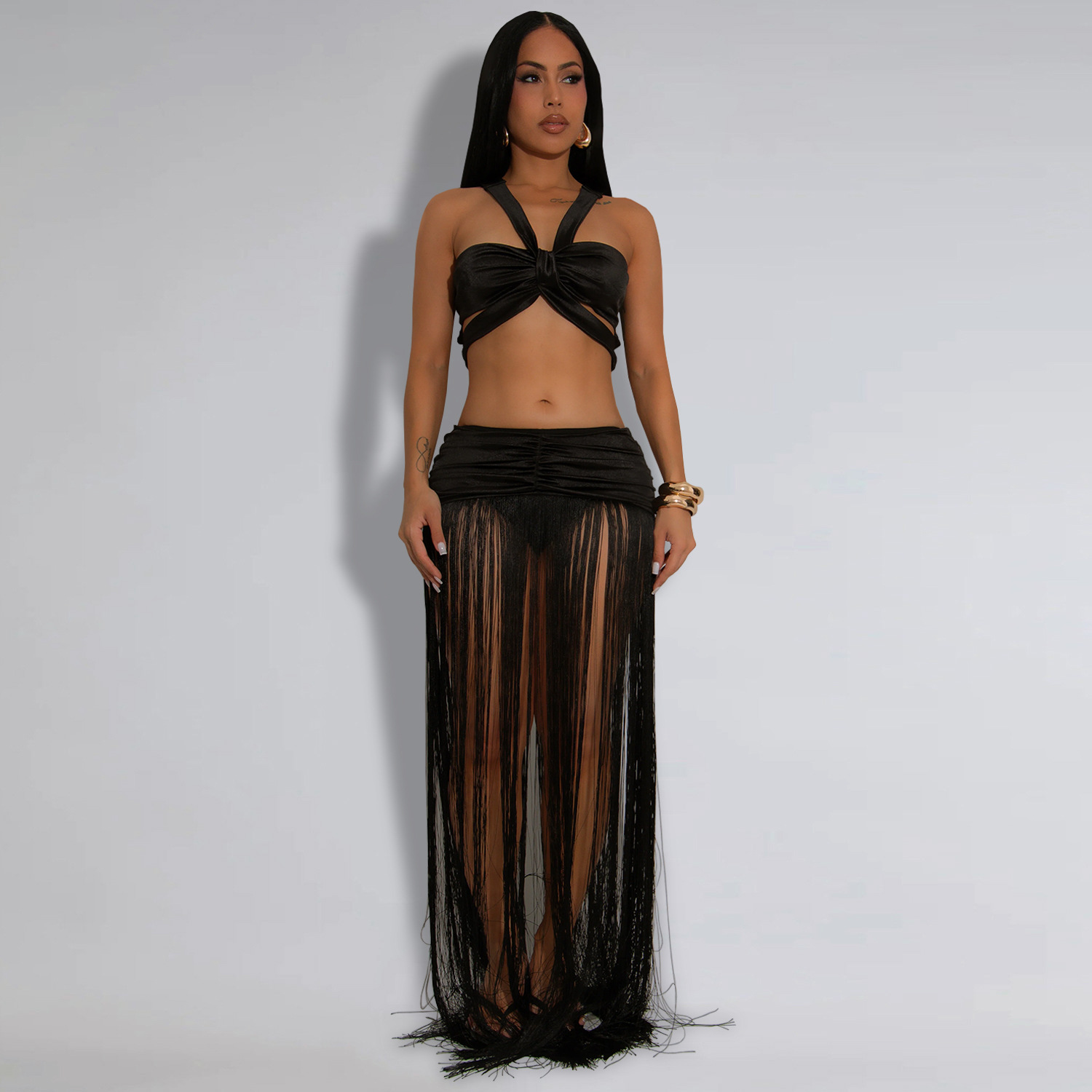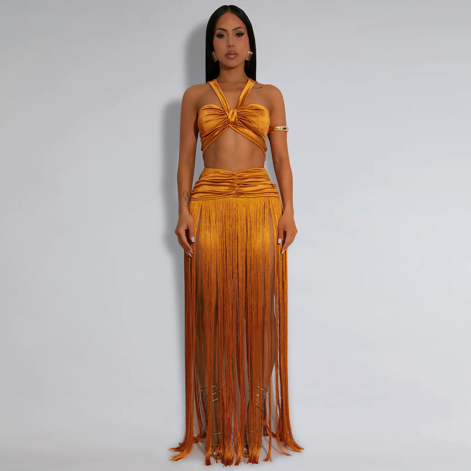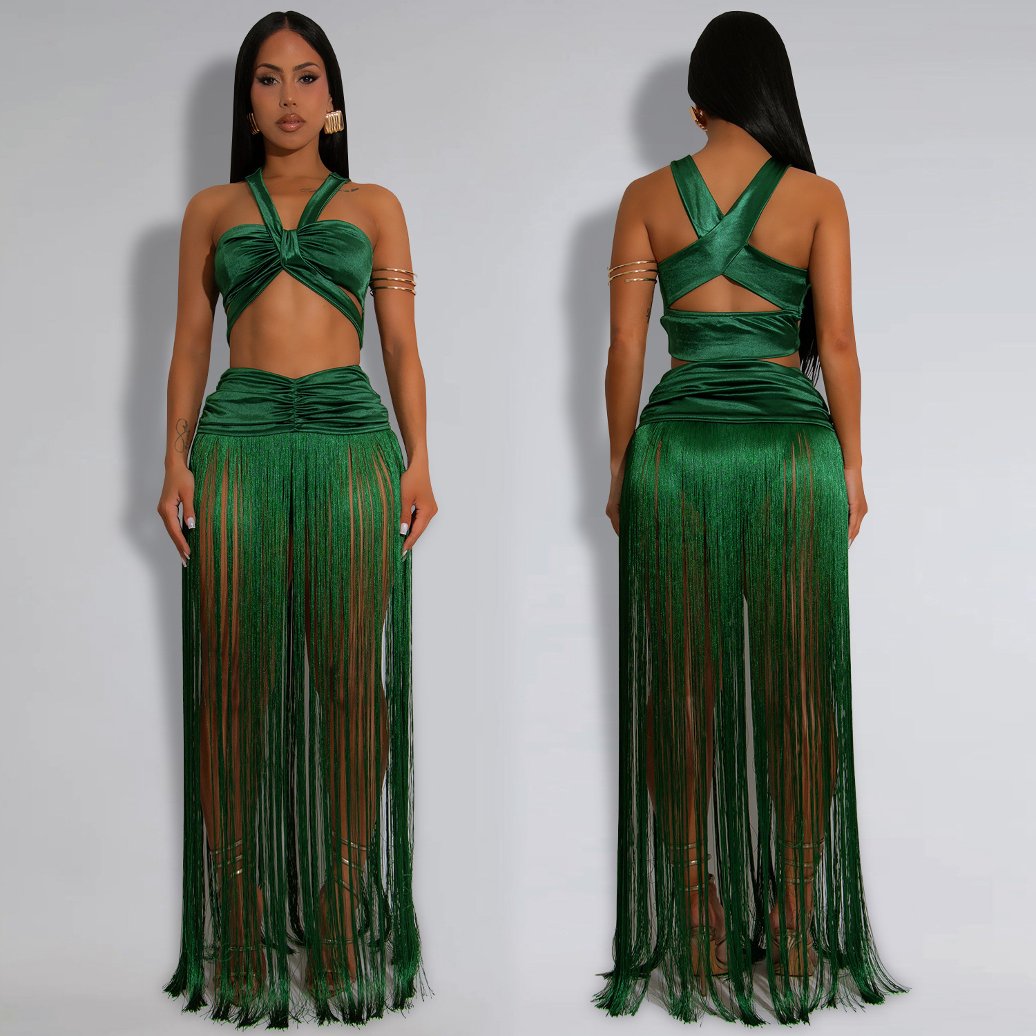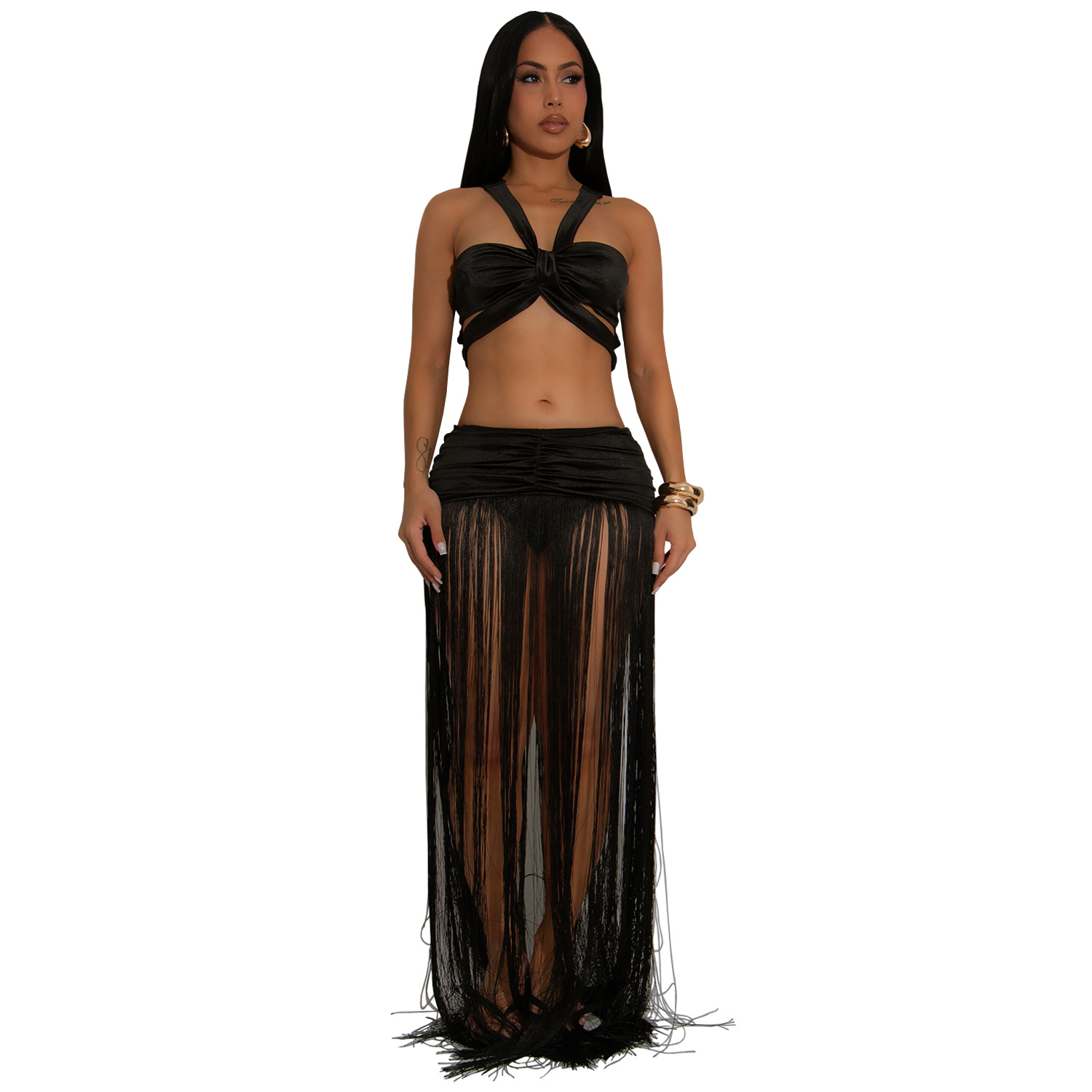 This Women's Fashion Sexy Strap Top & Fringe Long Skirt Two-Piece Set Design Made Of High Quality polyester And Spandex Material. It Is Stretchy, Durable And Comfortable. It Come With The Top And Skirt Matching Set. Women’s Skirt Suit Sets Is a Great Alternative To One Piece Outfit. It Can Either Be Worn Together Or Individually, So You Can Combine Them Endlessly. Grab Different Two Piece Skirt Set retail On Our Website a Women's Clothing Store Online At Really affordable price And Enjoy fast delivery worldwide.