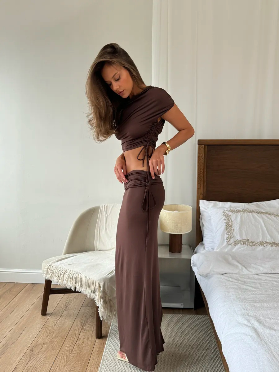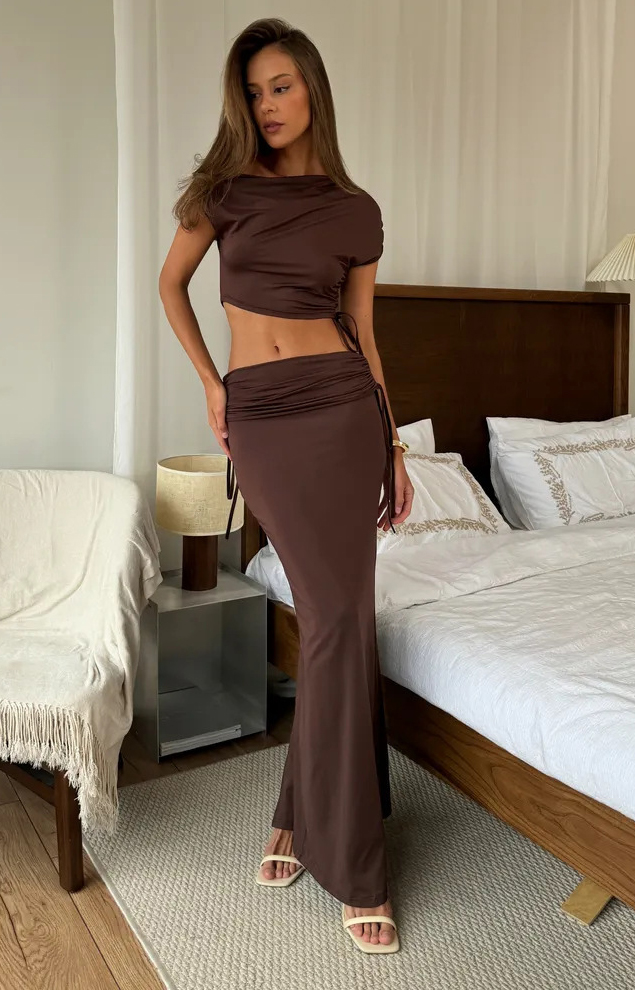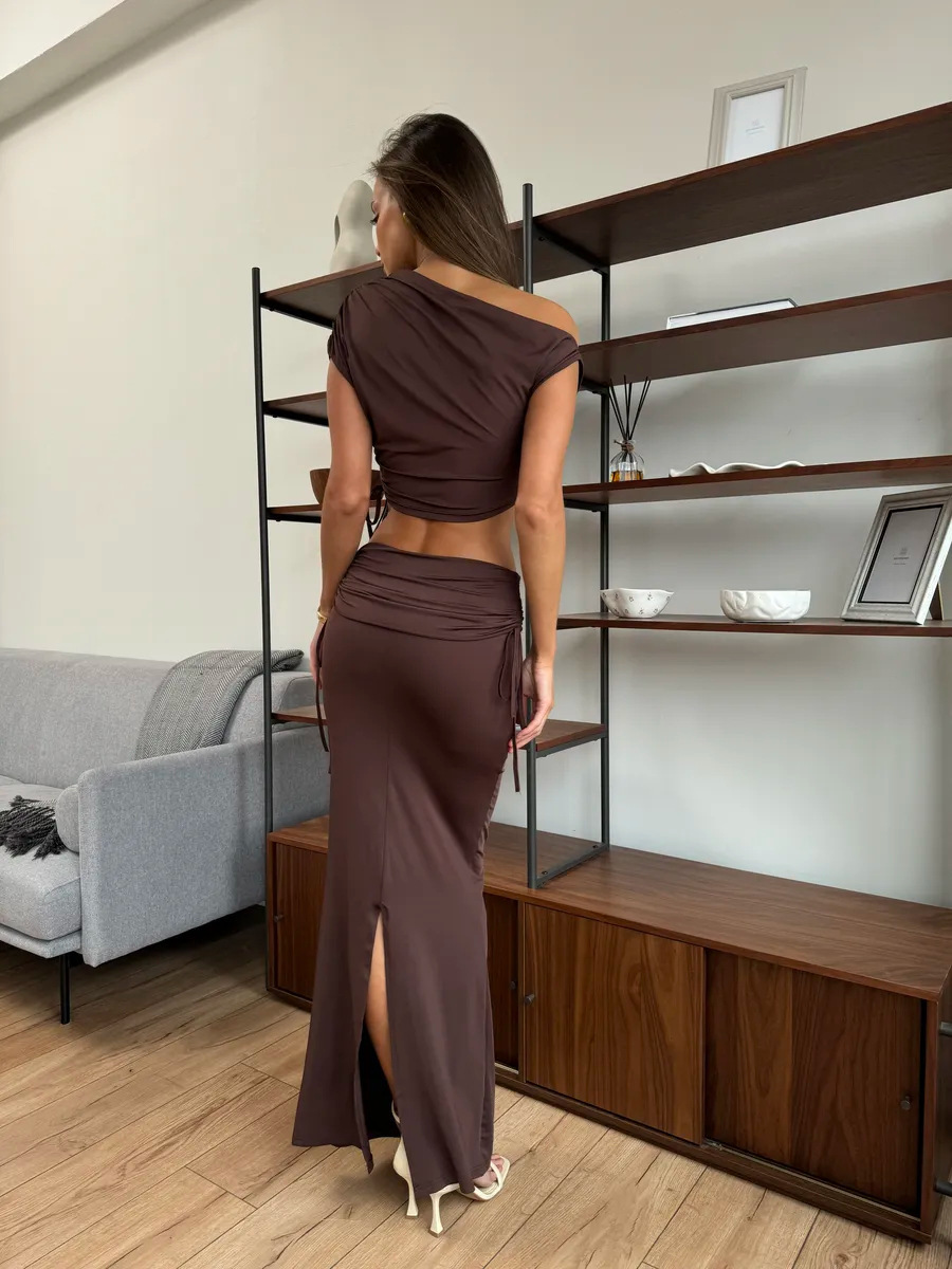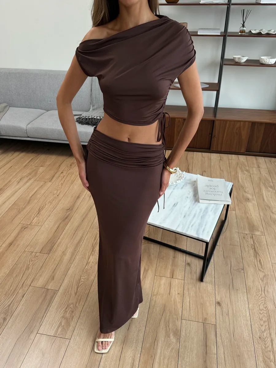 This Women's Fashion Slash Shoulder Sexy Crop Top & Slit Skirt