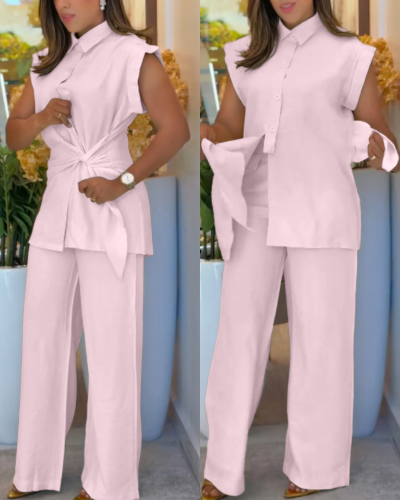 This Women's Fashion Sleeveless Lace-Up Shirt Wide-Leg Pants Set Design Made Of High Quality polyester And Spandex Material. It Is Stretchy, Durable And Comfortable. It Is a Must-Have Outfit For All Seasons. retail Two Piece Pant Sets Can Solve Your cloth selection Troubles. Explore More 2 Piece Pants Set On BamBam retail Women Clothing Online Store.